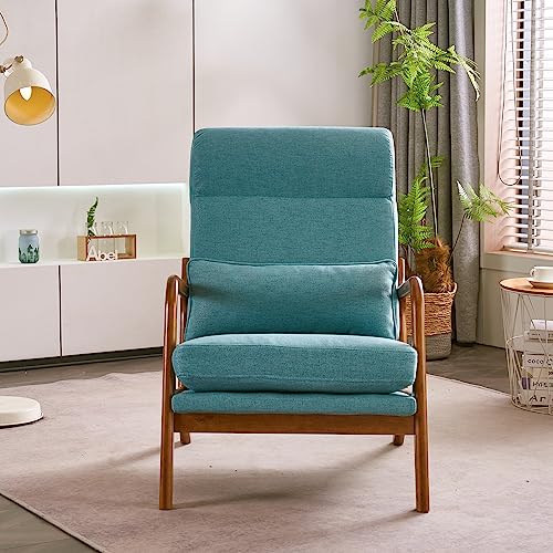 High Back Solid Wood Armchair for Living Room,Bronzing Cloth Lounge Chair Indoor with Wood Legs and Soft Cushion, Modern Accent Chair for Bedroom,Apartment, Office, Rust