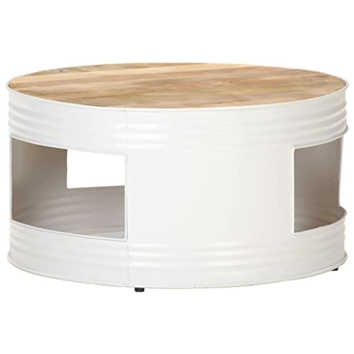 Coffee Table White 26.8"x26.8"x14.2" Solid Mango Wood,Durable Mango Wood Coffee Table Stylish Addition for Living Rooms and Offices Accent Coffee Tables for Home & Kitchen
