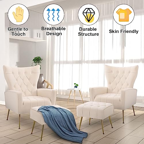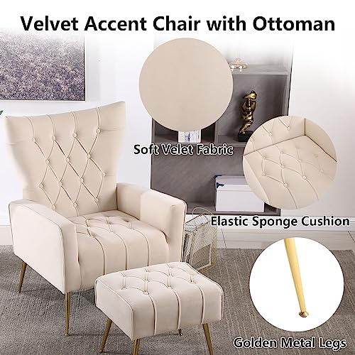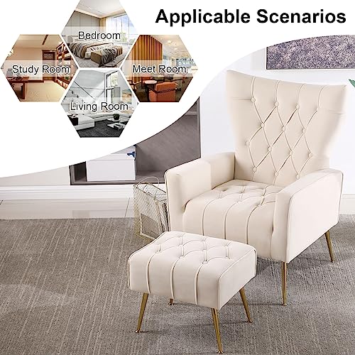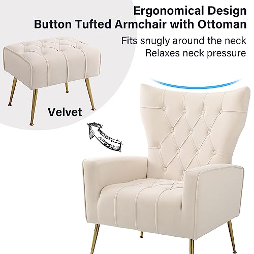 ODUWA Velvet Accent Chair with Ottoman,Modern Accent Chairs with Armrests and Backrest,Button Tufted Chair,Single Recliner Armchair with Ottoman for Living Room Bedroom Office