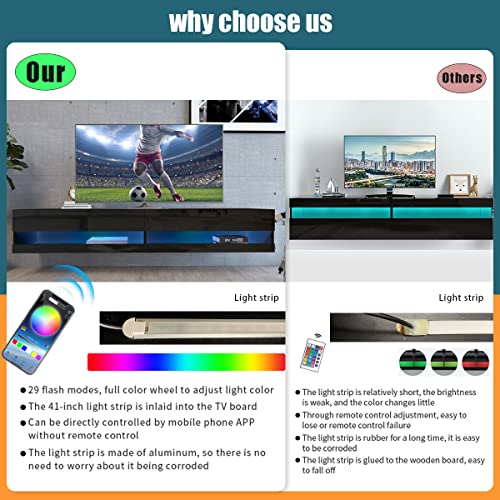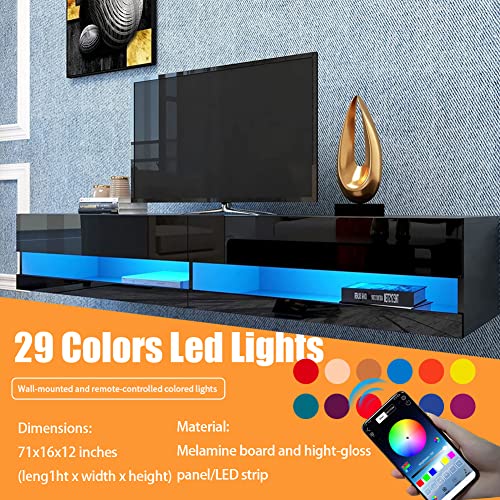 Floating TV Stand,70" Floating Entertainment Center High Glossy with LED Lights,Floating TV Stand Up to 80 Inch TVS,Wall Mounted TV Stand Media Console for 55+ inch TV,APP Control