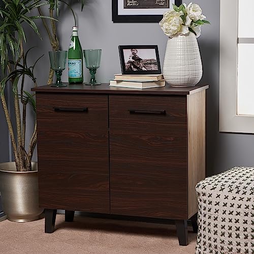 Mid-Century Two-Door Cabinet with Splayed Legs and Storage Shelves Modern Design for Living Room or Bedroom, Walnut Brown