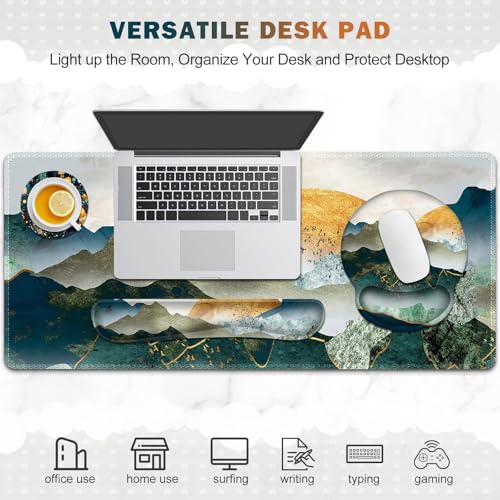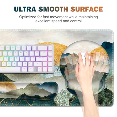 Gaming Mouse Pad, Large Desk Mat, Cute Desk Pad Protector, 4in1 XXL Mousepad + Keyboard Wrist Rest+Mouse Wrist Rest+Coaster Set with Ergonomic Desk Pad for Home Office Table Computer, Lovely Mushroom