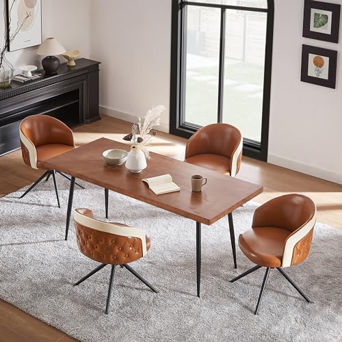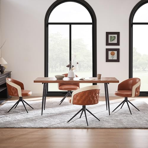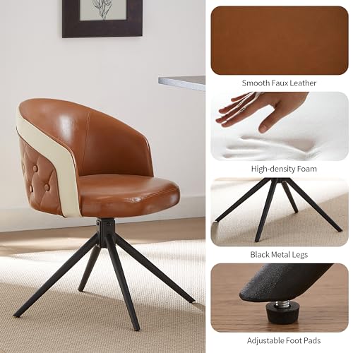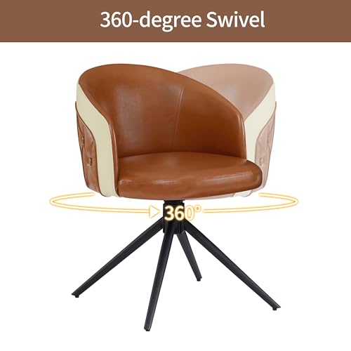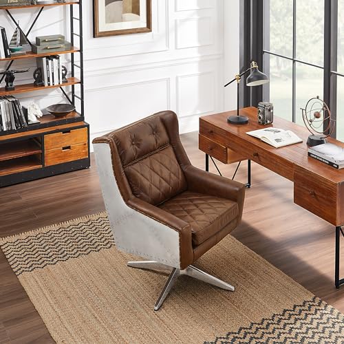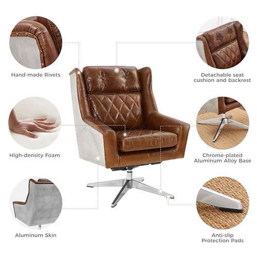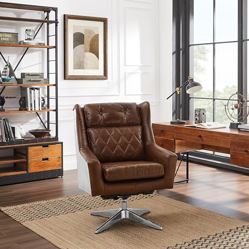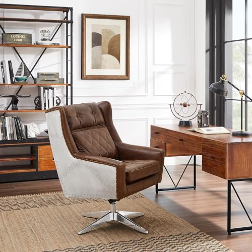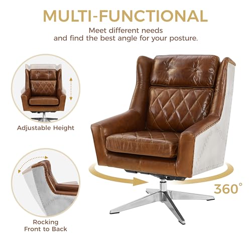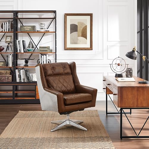 Art Leon Genuine Leather Chair, Mid Century Modern Swivel Accent Chair, Executive Office Chair with Aluminum Base for Living Room Study Office, Adjustable Height, Chocolate