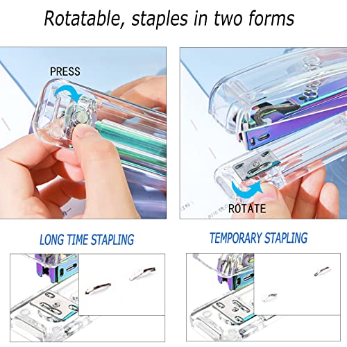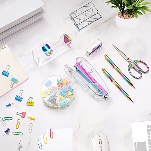 Office Desk Accessories,Office Supplies Set Acrylic Stapler Set Staple Remover, Tape Holder, Pen Holder, 2 Ballpoint Pen, Scissor, Binder Clips, Paper Clips and 1000pcs Staples(Silver)