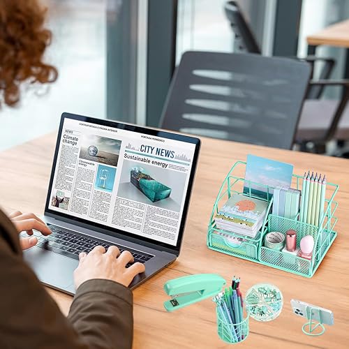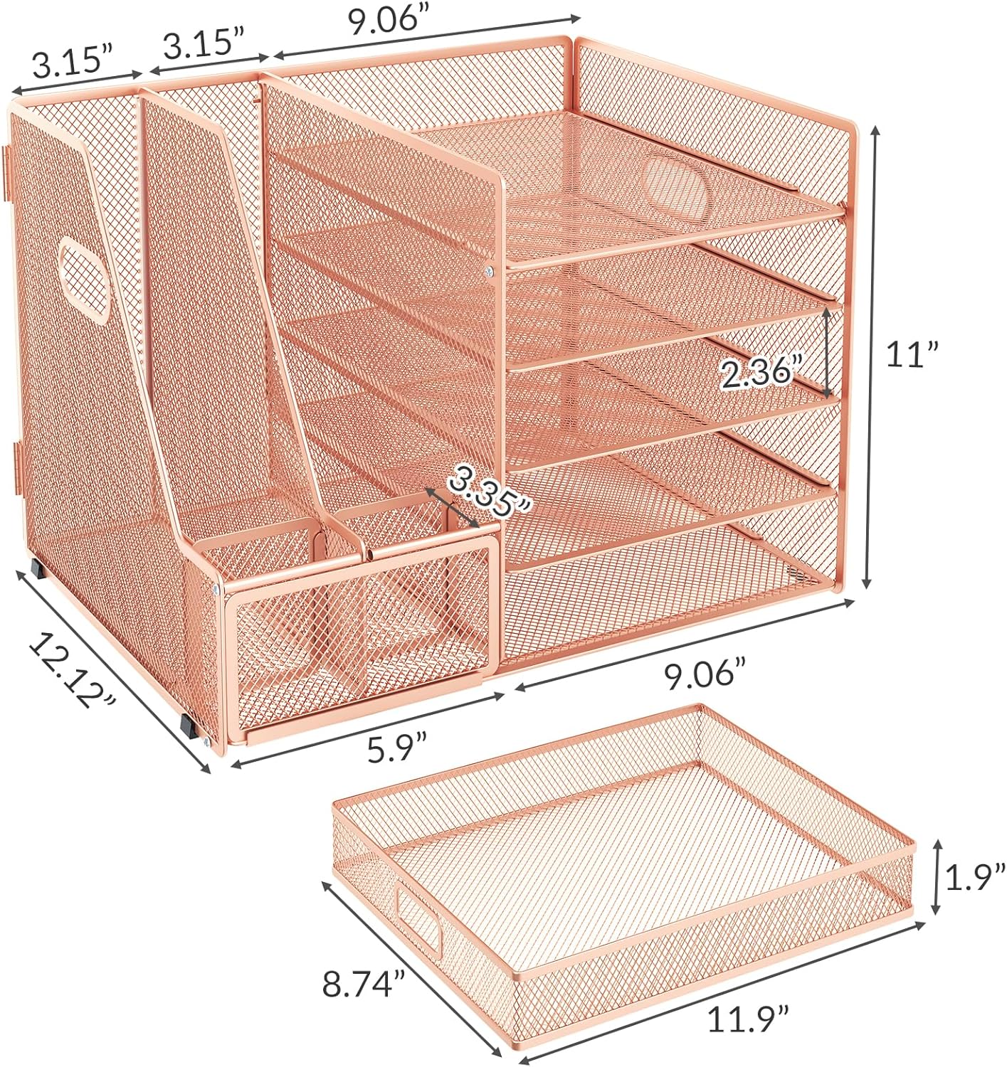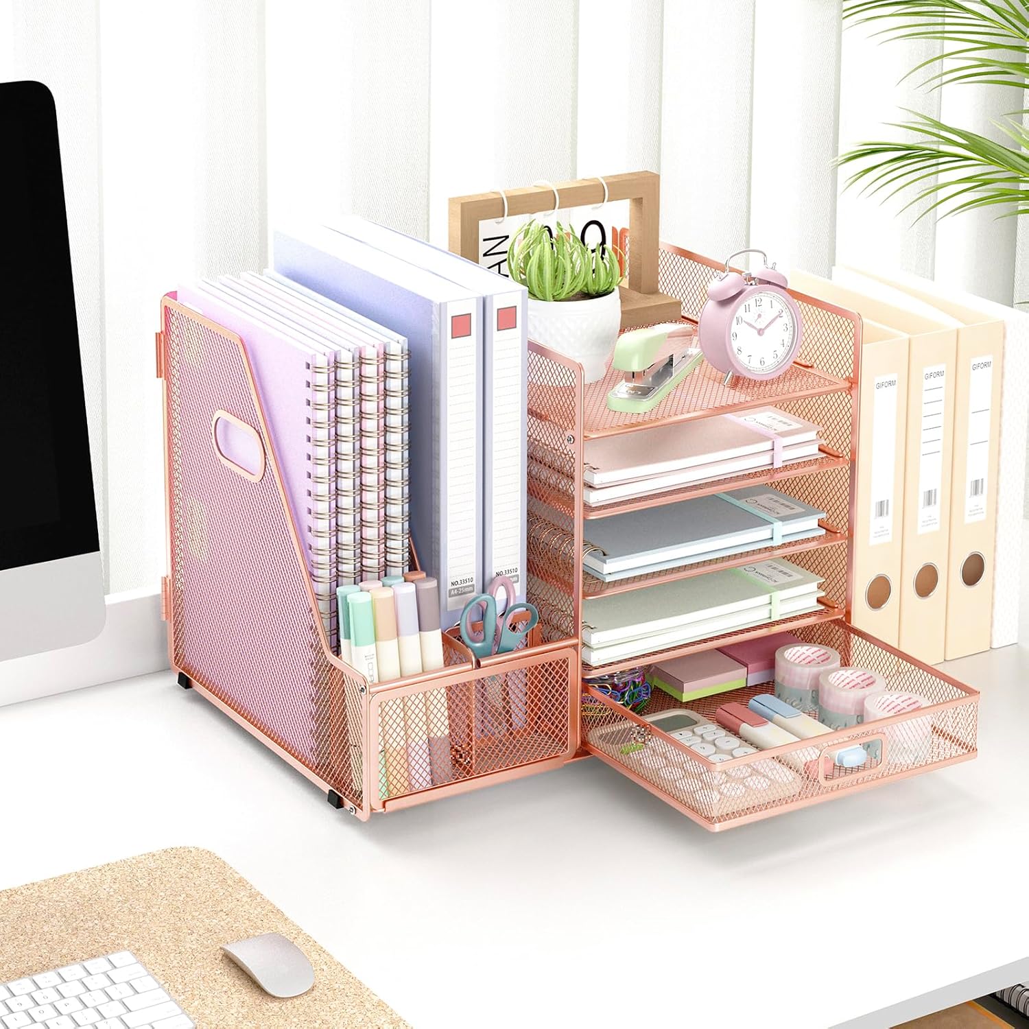 EOOUT Rose Gold Office Supplies Set Desk Combo Set, Acrylic Stapler Set and Mesh Desk Organizer with File Shelves, 5-Layer Paper Tray Organizer for School Home Office Supplies (Rose Gold)