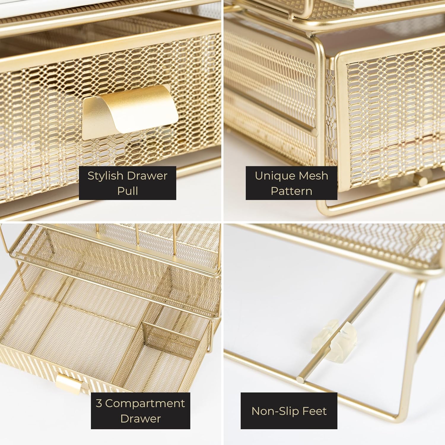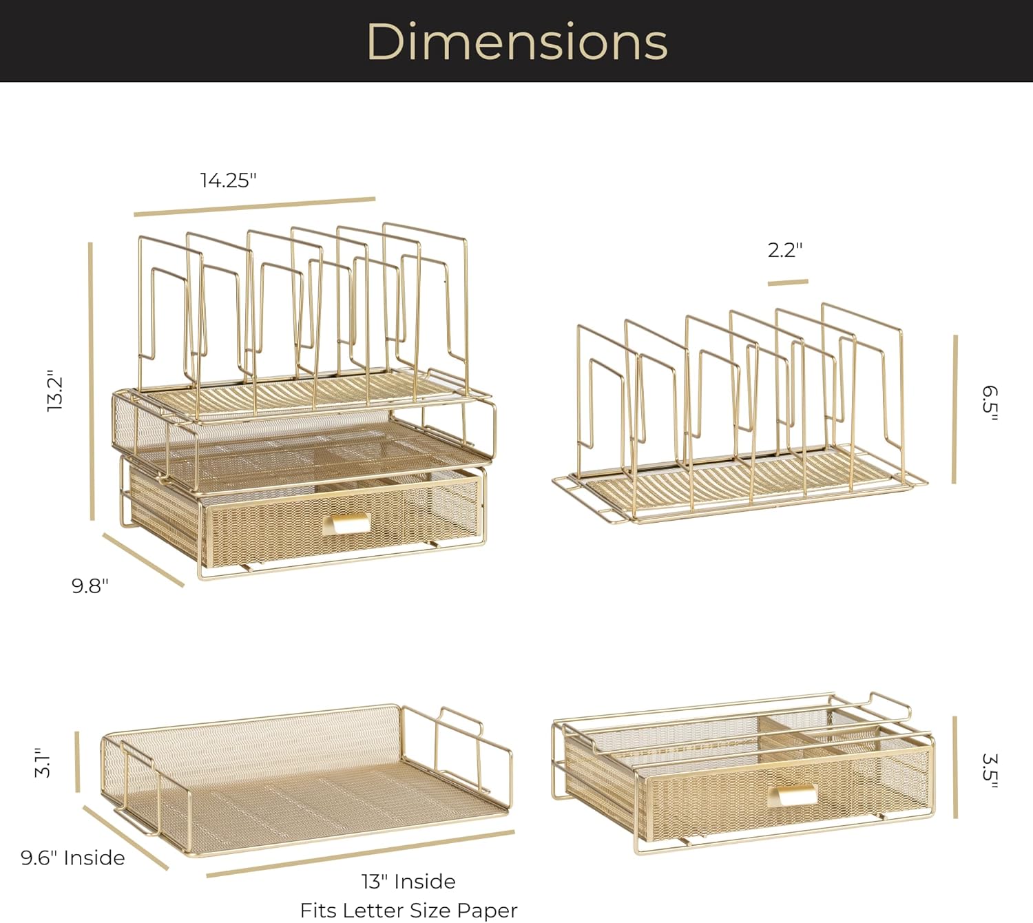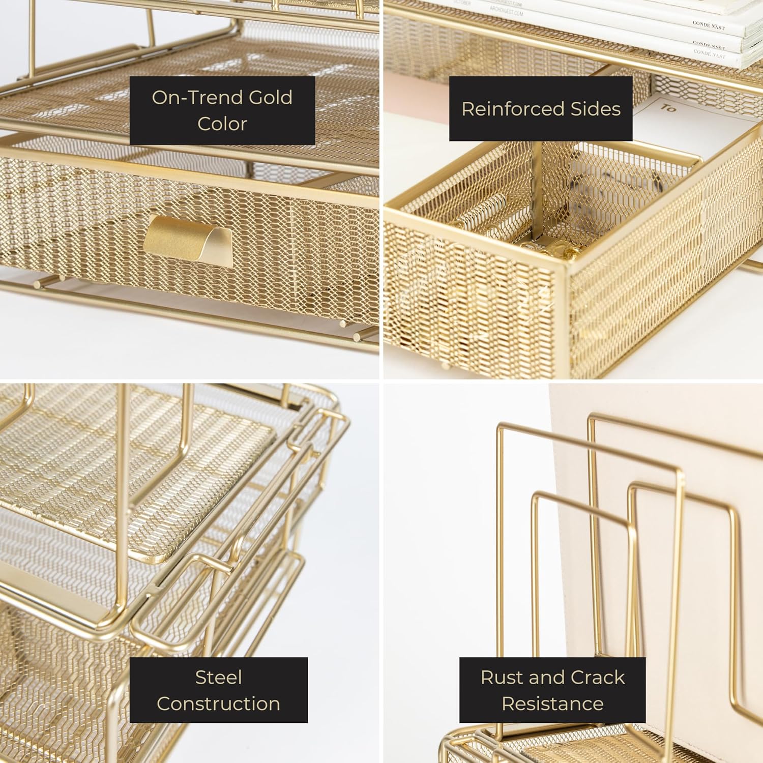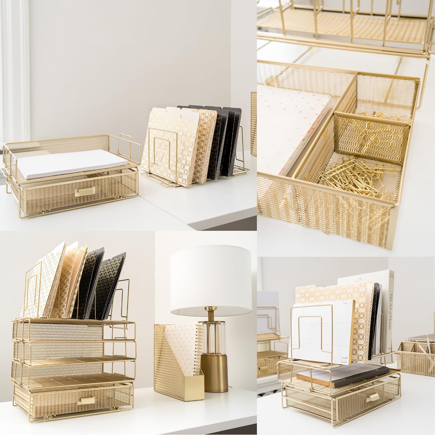 Gold Desk Organizer - Gold Desk Accessories for Women Office Set Includes Detachable File Organizer, Stackable Paper Tray, Stackable Drawer - Gold Office Supplies for Desk Gold File Organizer for Desk