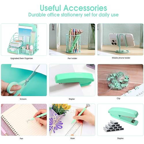 Gold Desk Organizers and Accessories Office Supplies Set Stapler, Pen Holder, Phone Holder, Scissors, Pen, Ruler, 30 Paper Clips, 22 Binder Clip, 20 Tacks and 1000pcs Staples (Gold)