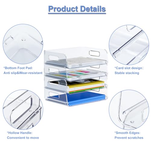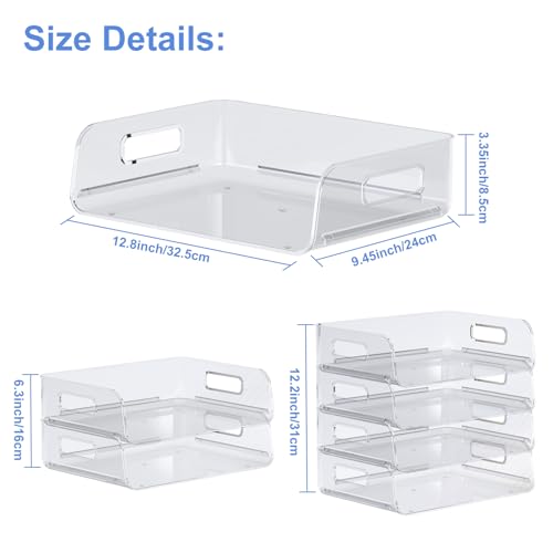 Paper Organizer for Desk, 4-Pack Stackable Letter Tray Set, Plastic Office Organization and Accessories Storage, Desktop File Mail Document Organizers, Inbox Tray for Desk, Clear