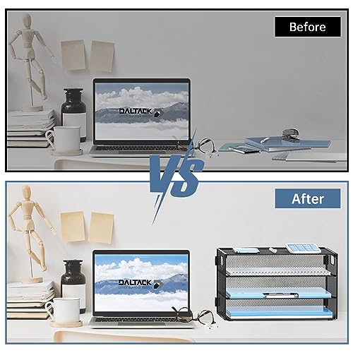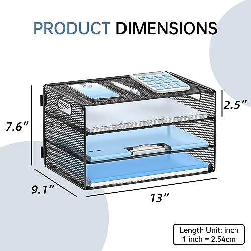 DALTACK 3 Tier Letter Tray Paper Organizer with Handle, Mesh Desk File Organizer, Paper Tray Desk Organizer for School Office Home, Metal Mesh, Purple