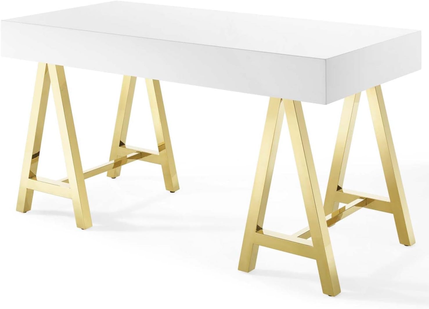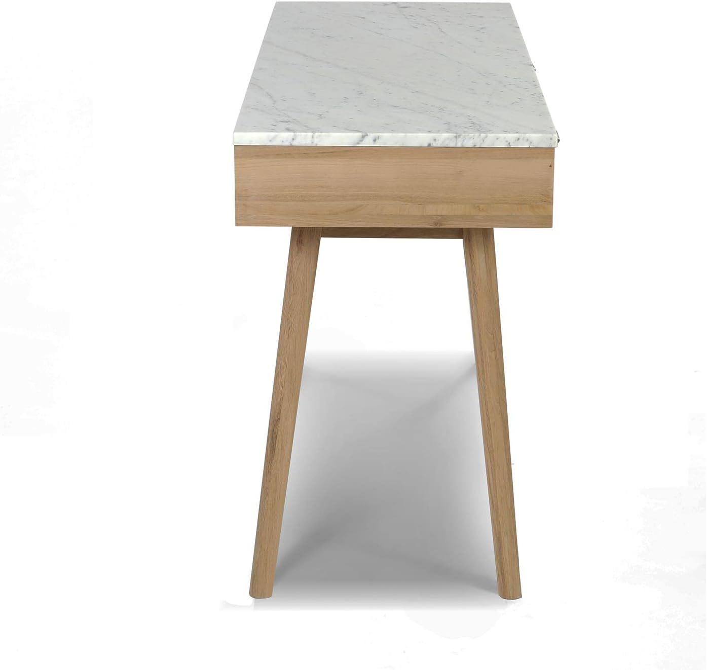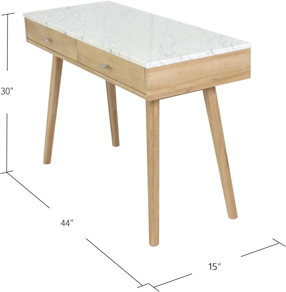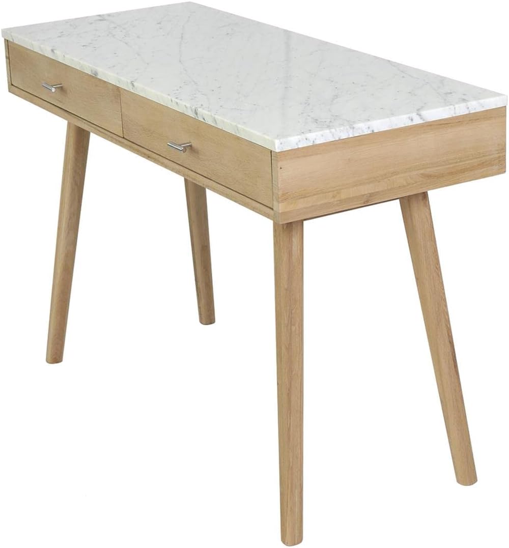 Bianco Contemporary Durable Viola Italian Carrara White Marble Writing Desk with Storage & Oak Legs - 44", Rectangular