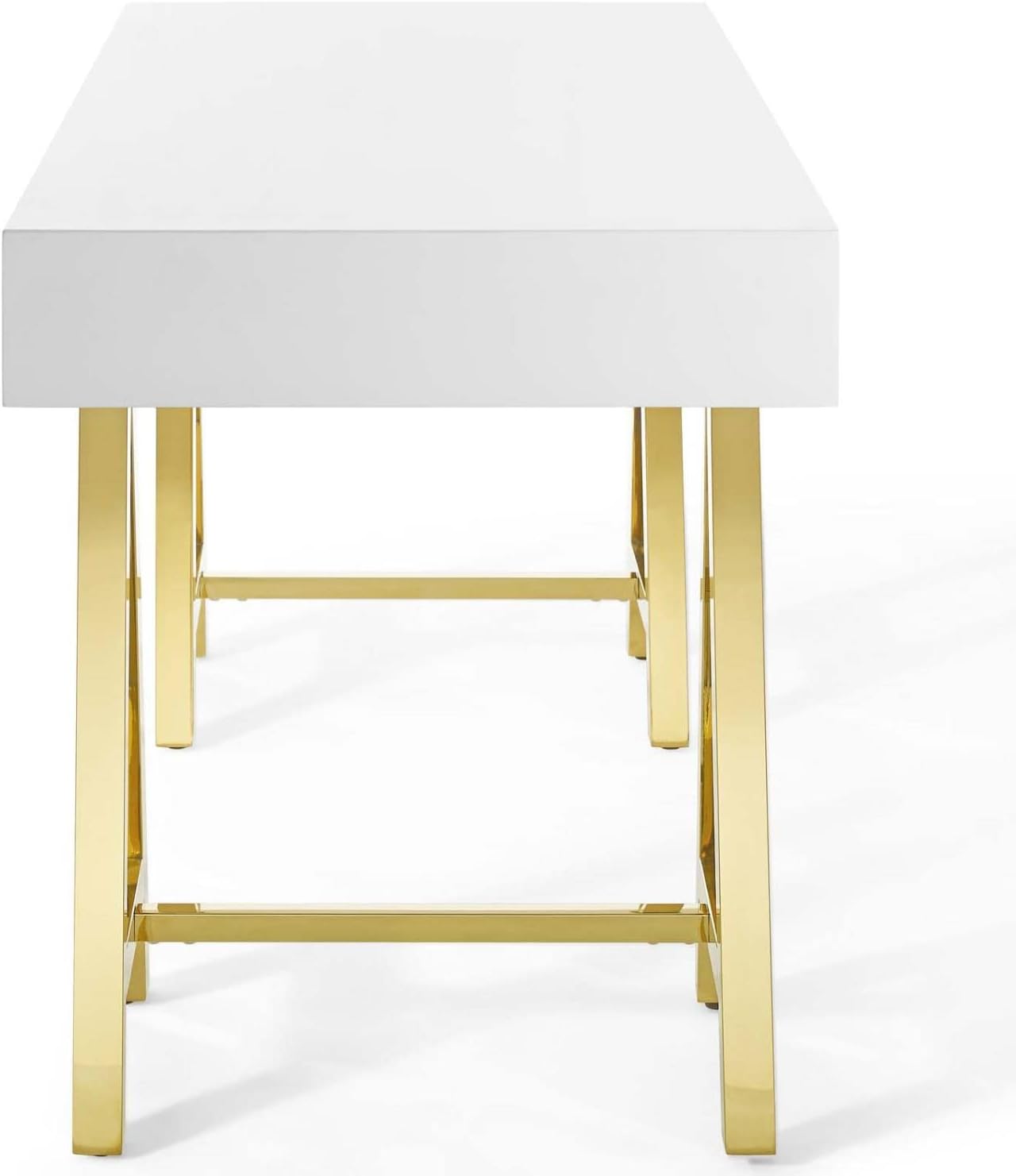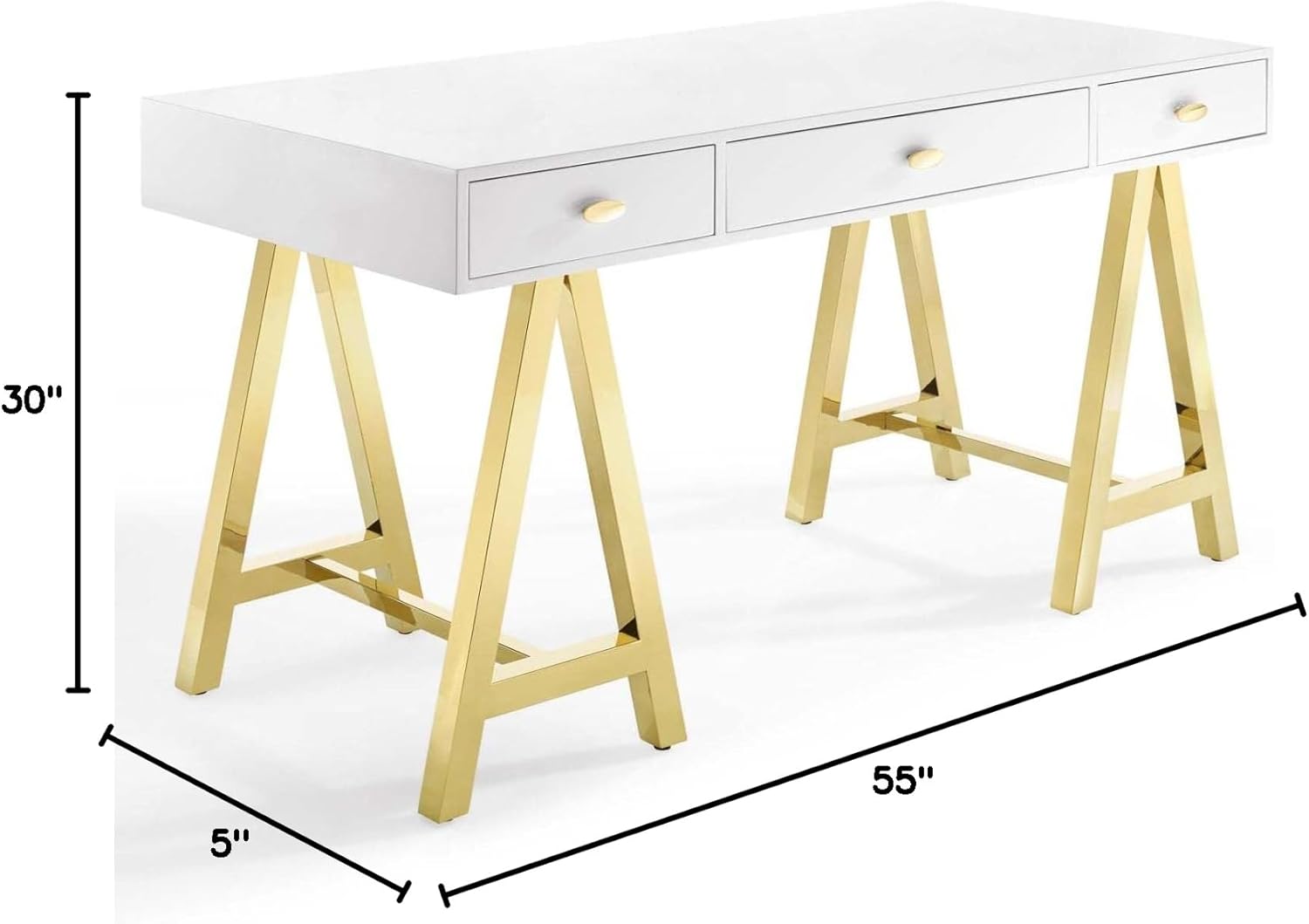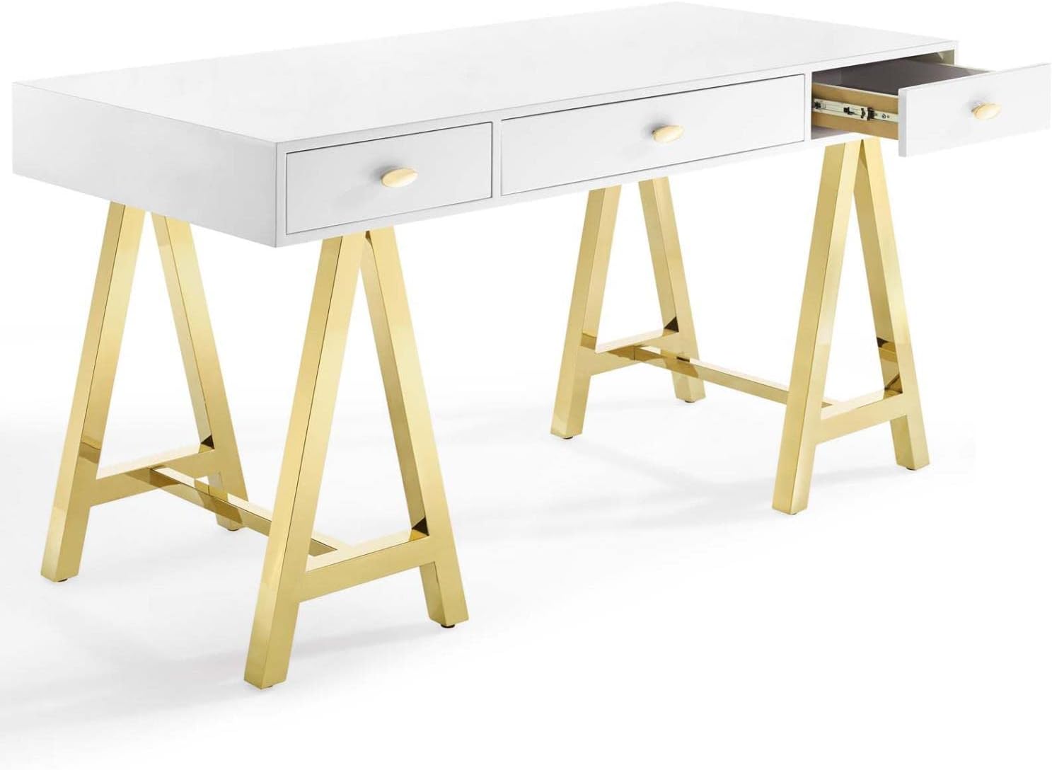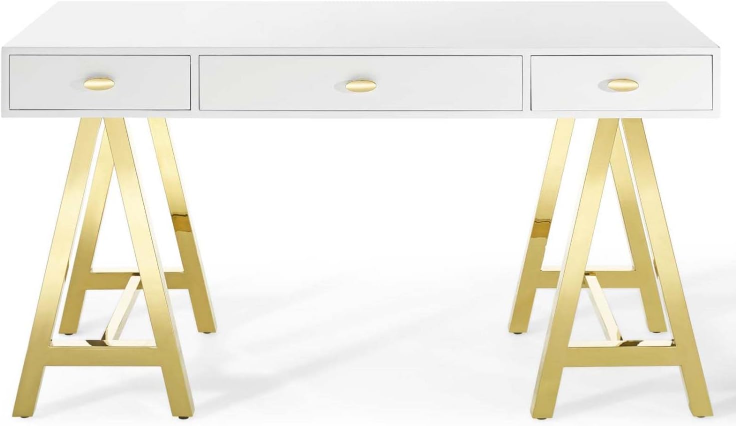Bianco Contemporary Durable Viola Italian Carrara White Marble Writing Desk with Storage & Oak Legs - 44", Rectangular