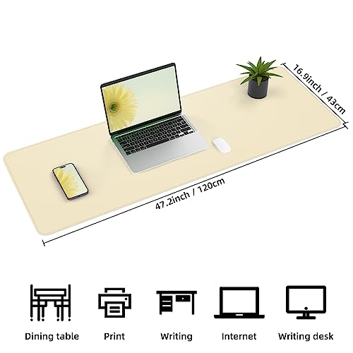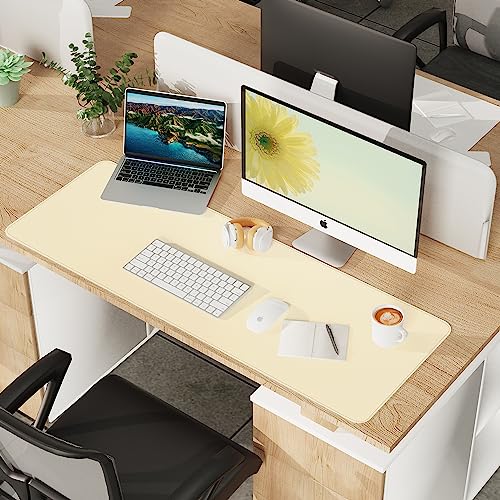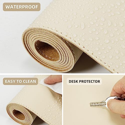 Leather Desk pad Protector, Large Desk mat with Natural Cork & PU Leather,Mouse pad,Non-Slip Office Desk Mat,Waterproof Desk Writing Pad for Office and Home (35.4in*17in,Dark Apricot)