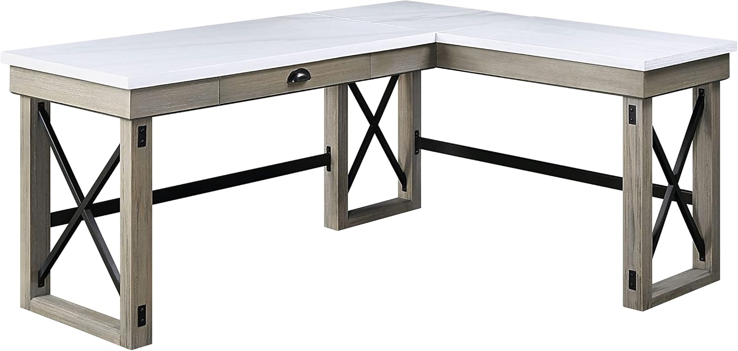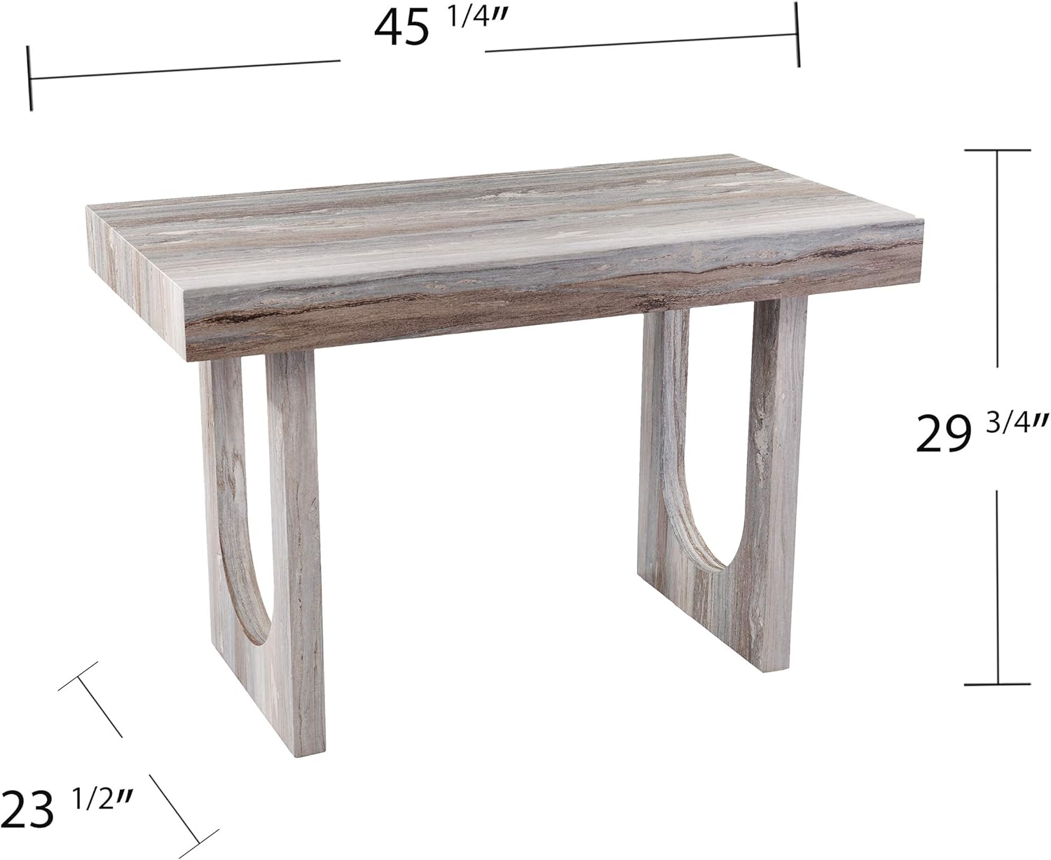 Pemberly Row No Tools Student Desk in Gray Faux Marble Wood Finish
