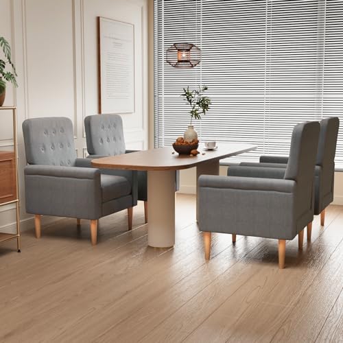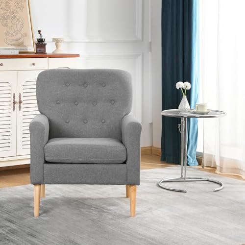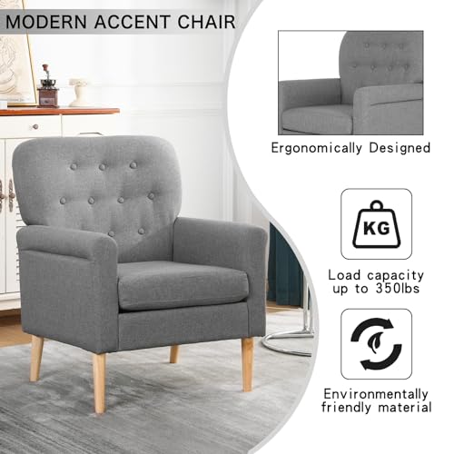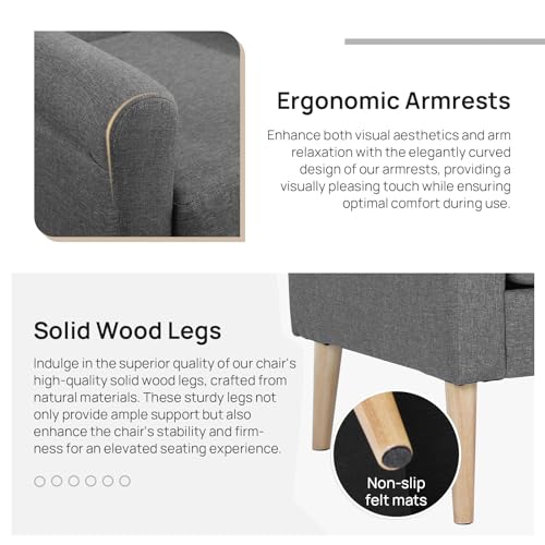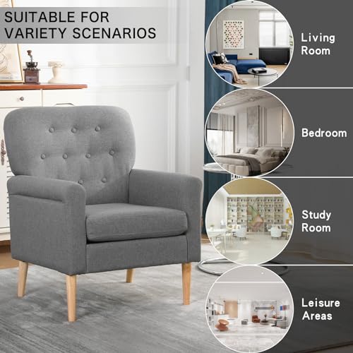 Fabric Accent Chair Set of 2, Mid Century Modern Armchair, Comfy Sofa Chair with Wooden Legs, for Living Room, Bedroom, Office, Reception Room(Grey)