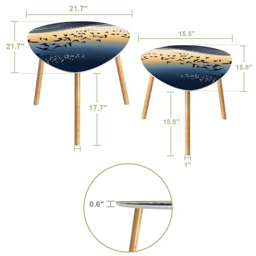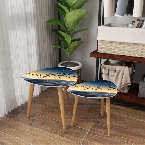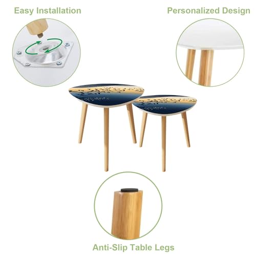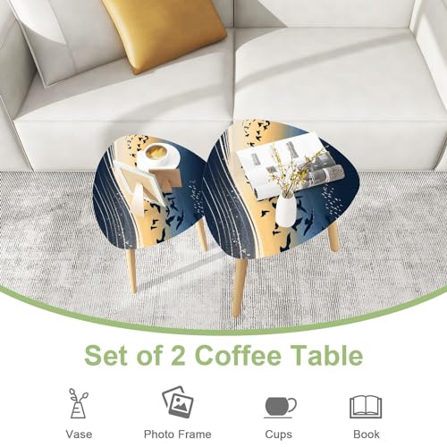 Triangle Nesting Coffee Table Set of 2 Abstract Coastal Sunrise Art Navy to Golden Gradient Modern Minimalist Side Table Small End Table Leisure Tea Table Living Room Bedroom Office