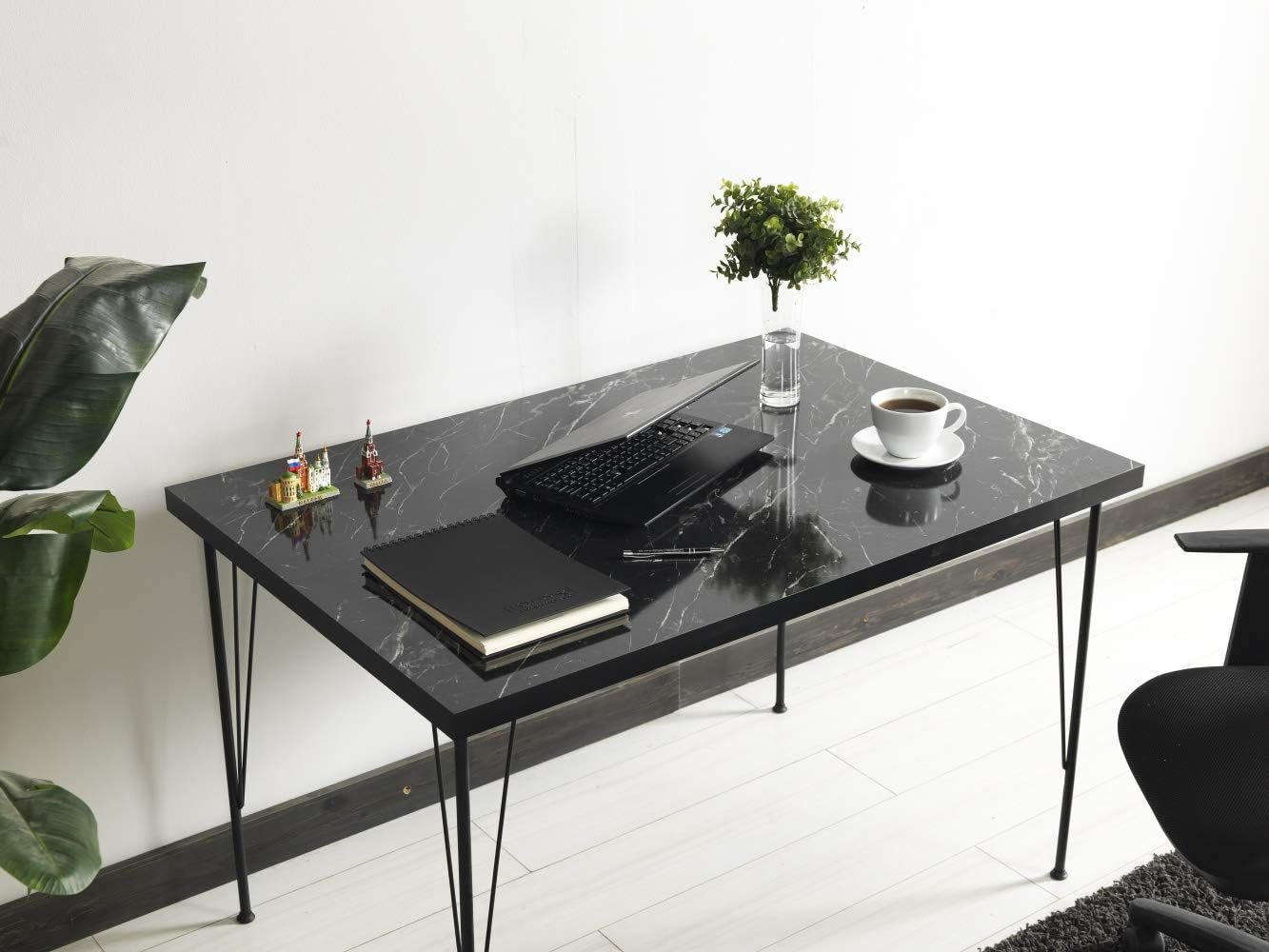 Soler 4 Metal Legs 47" Wooden Top Writing and Computer Desk for Home Office, Marble Black
