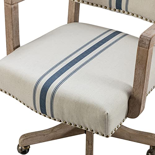 HULALA HOME Wooden Base Home Office Chair, Height Adjustable Swivel Desk Chair with Nailhead Trim and Arms, Comfy Upholstered Computer Task Chair,Navy