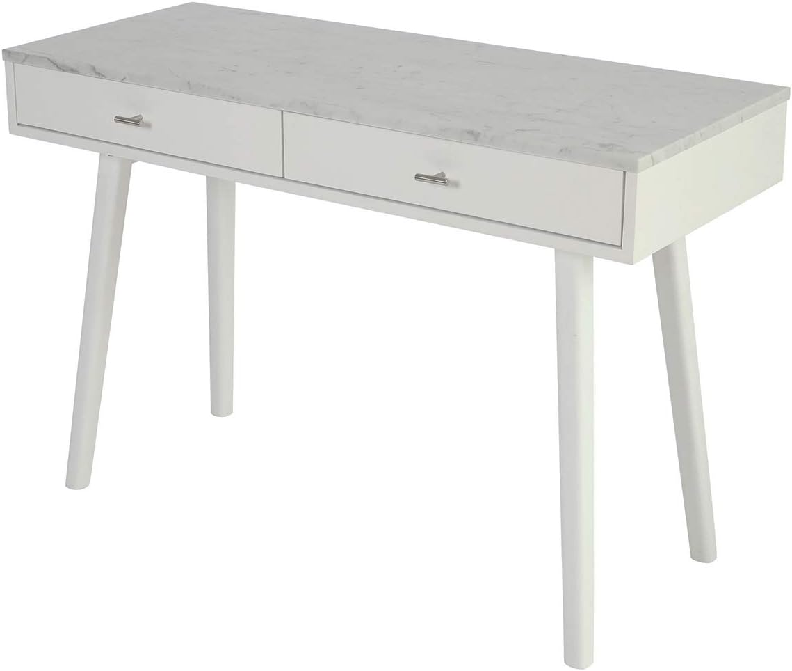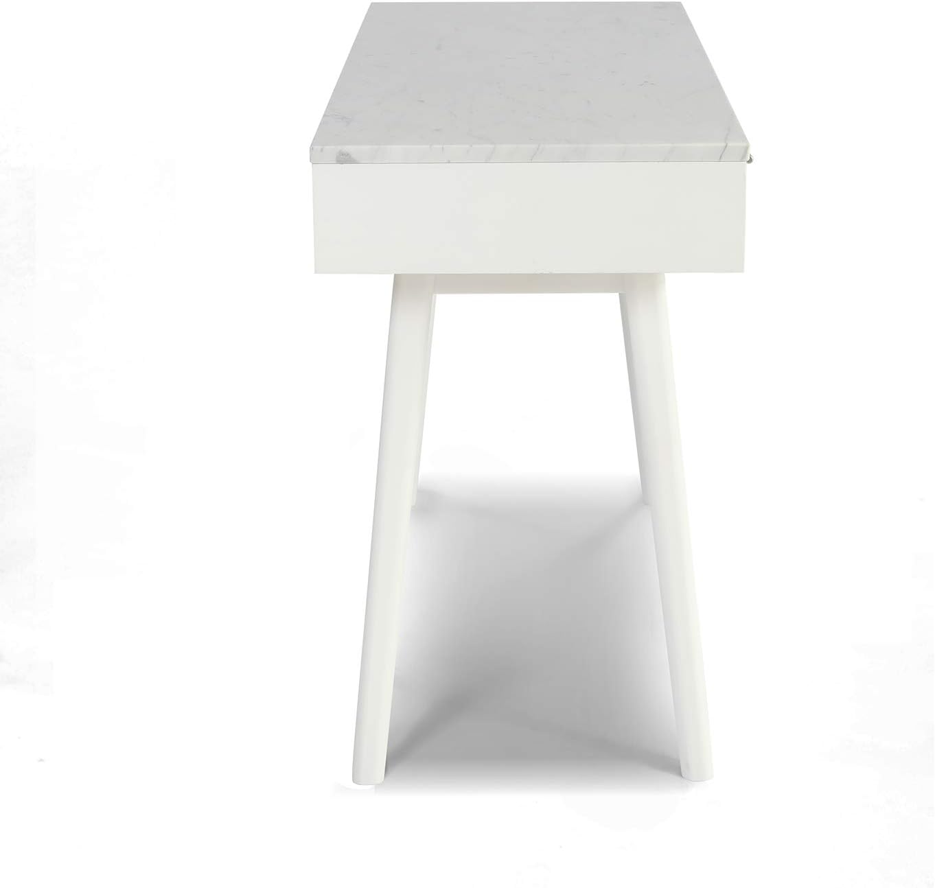 Viola 44" Rectangular Italian Carrara White Marble Writing Desk with White Legs