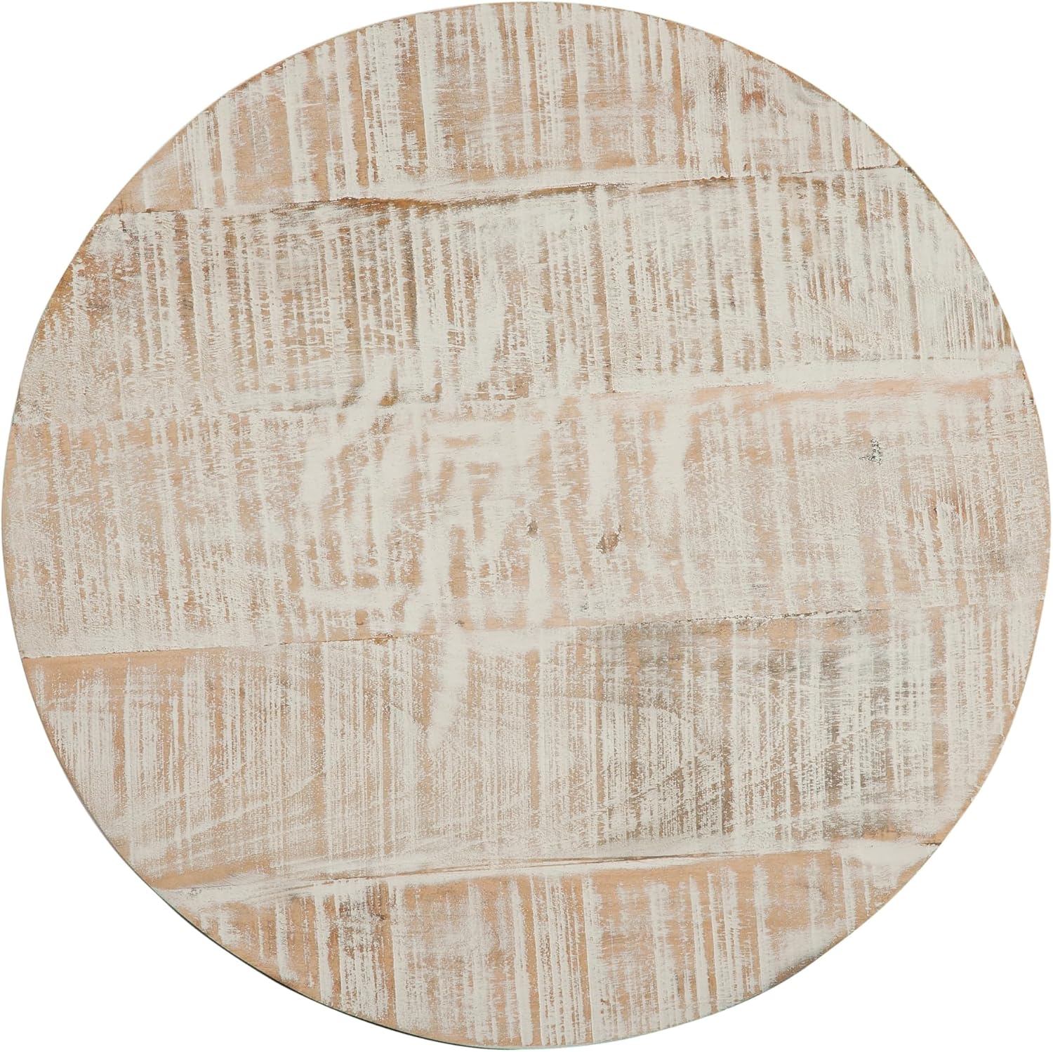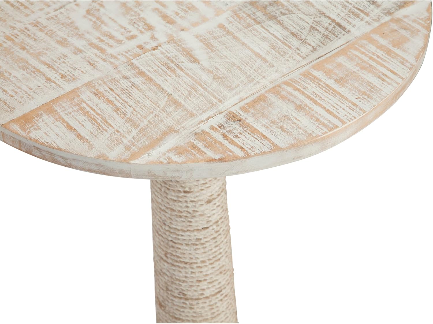 Solid Wood White Wash Round End Table with Jute Rope Wrapped Base Nautical Coastal Rustic Weathered Finish Distressed
