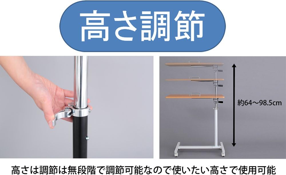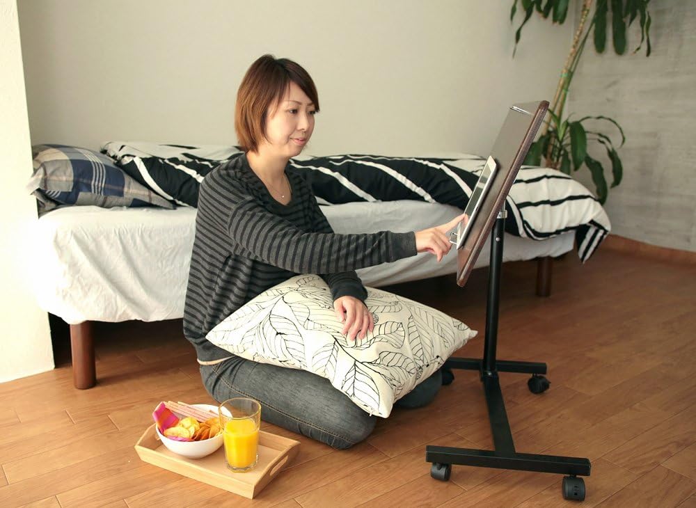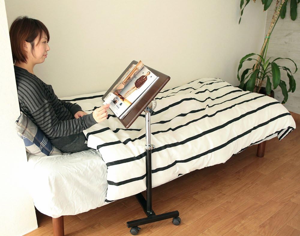 Osmac SCY-2168M4CDB Side Table with Casters, Foldable, Adjustable Height, Adjustable Height, Dark Brown & Black