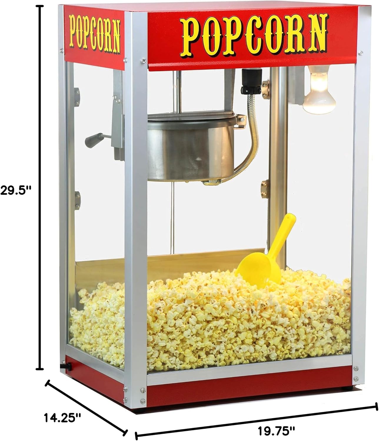 West Bend PCMC20RD13 Wheeled Popcorn Cart with Non-Stick Stainless Steel Popcorn Kettle, Storage Shelf, and Popcorn Scoop for Popcorn Machine, 10 Cup, Red
