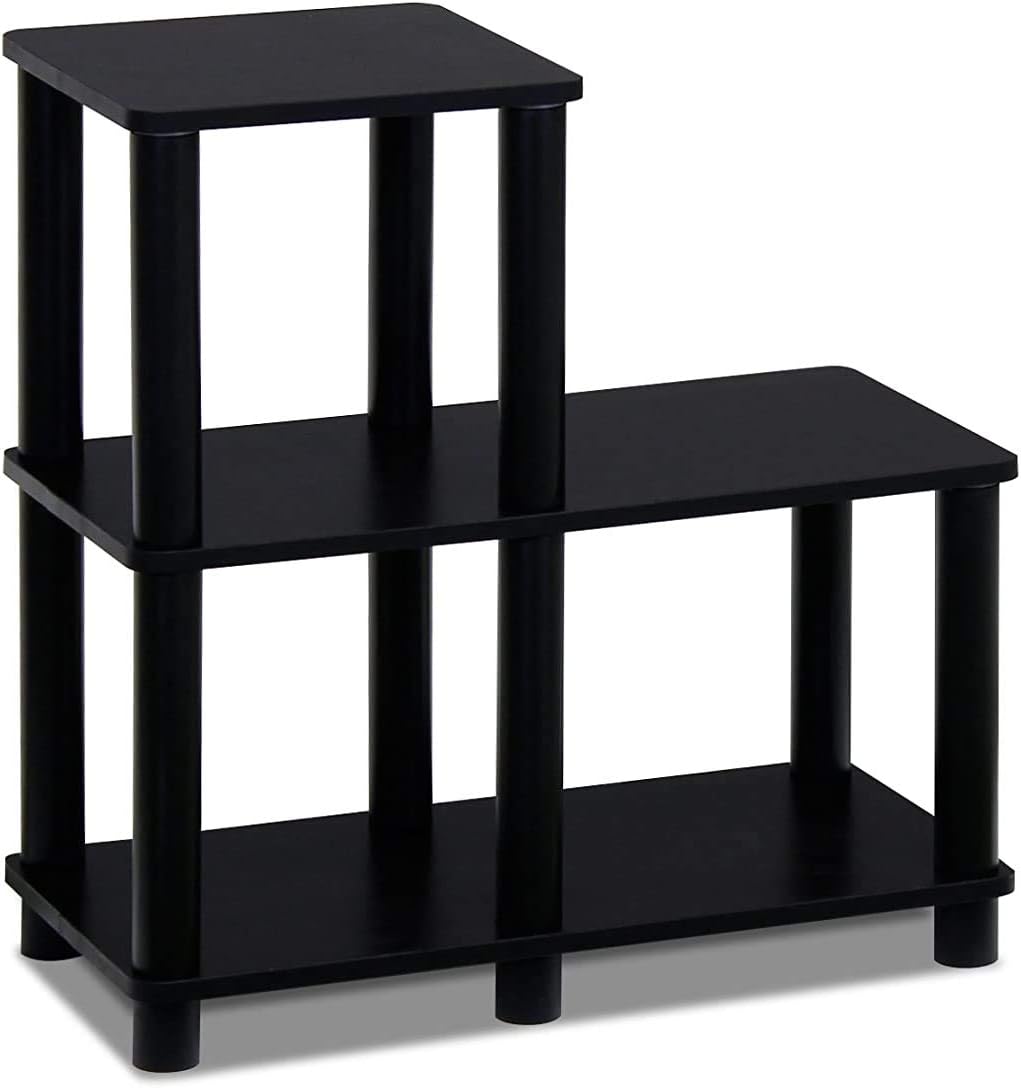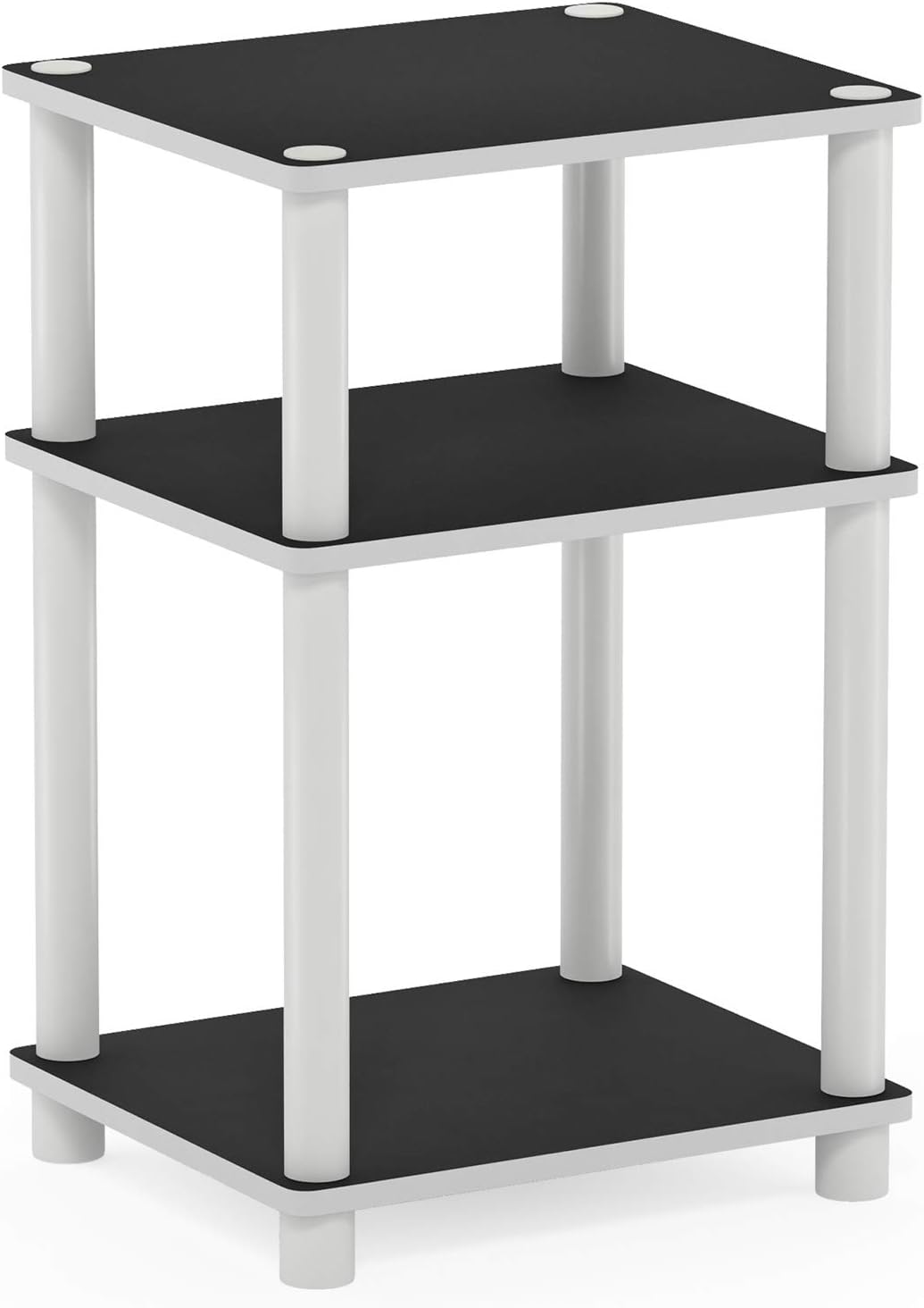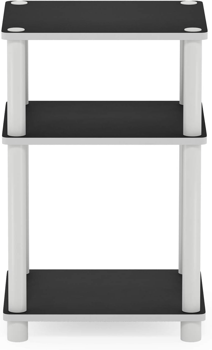 Furinno Turn-N-Tube Accent Decorative Shelf, Espresso/Black Just 3-Tier Turn-N-Tube End Table/Side Table/Night Stand/Bedside Table with Plastic Poles, 1-Pack, White/White