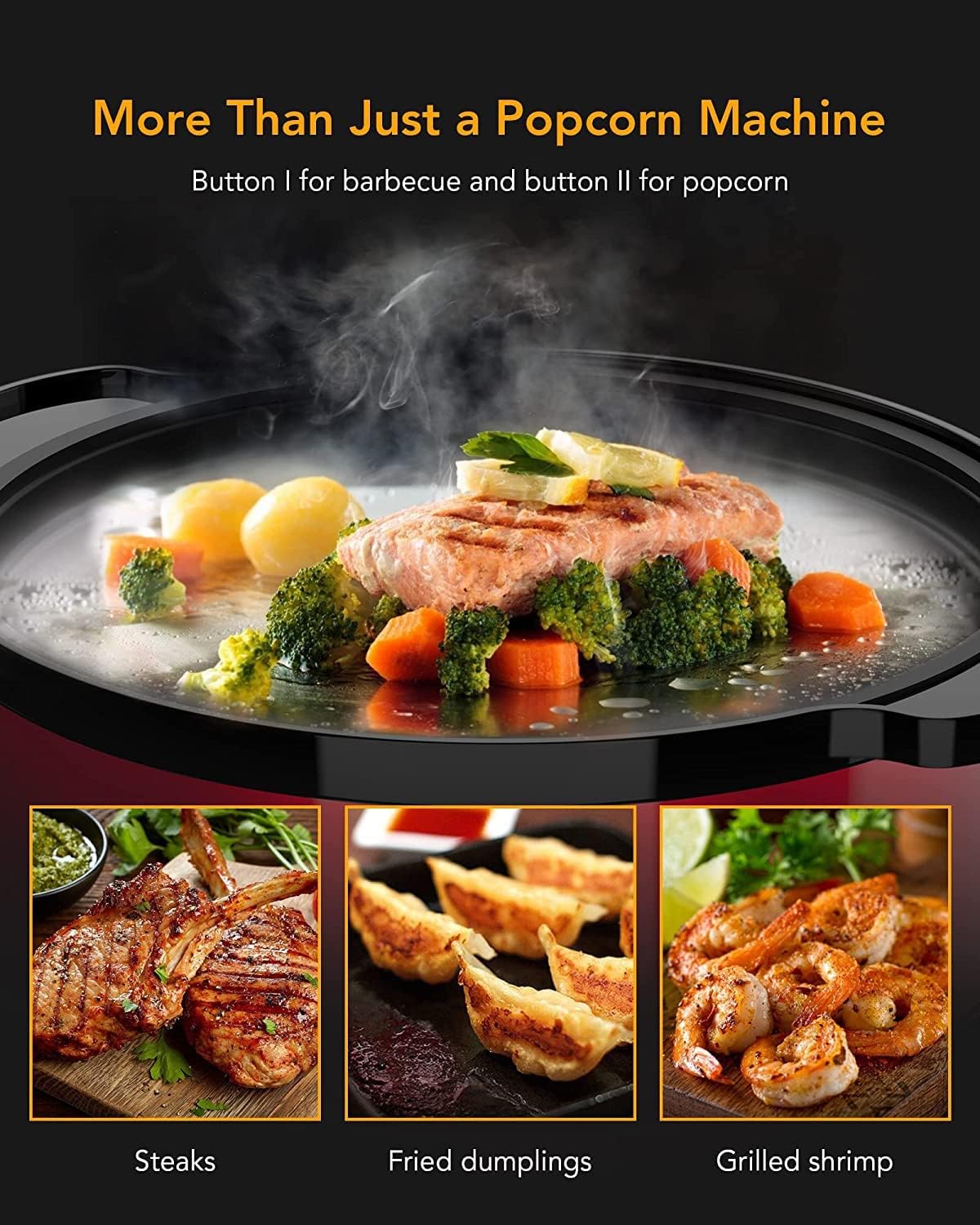 Popcorn Machine Electric Hot Oil Popper, 2-in-1 Automatic Stirring Hot Oil Popcorn Popper Maker & Grill Machine, Large Lid for Serving Bowl, 2 Measuring Spoons, 16-Cup for Home Party