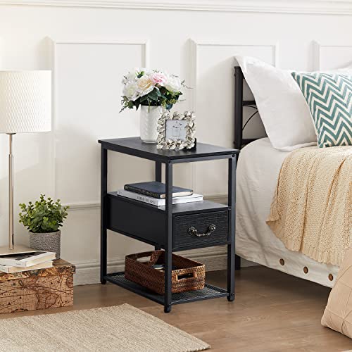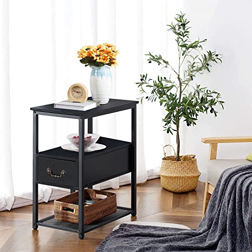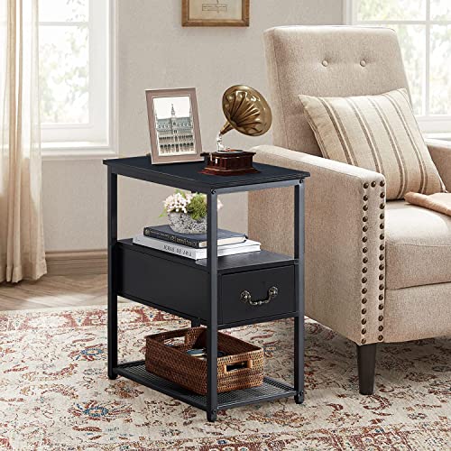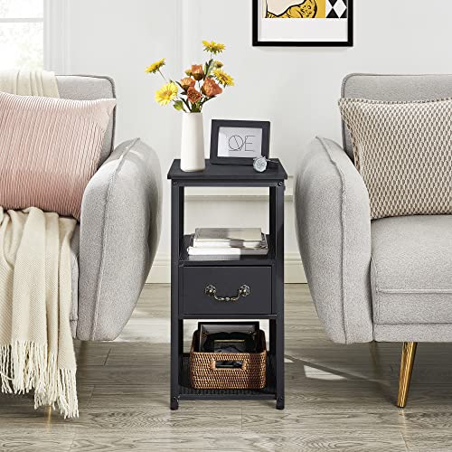 VECELO Tall End Side Tables, 24" Height Narrow Nightstand Storage Shelf for Bedroom Living Room, Easy Assembly,Industrial Style, Single Drawer, Black
