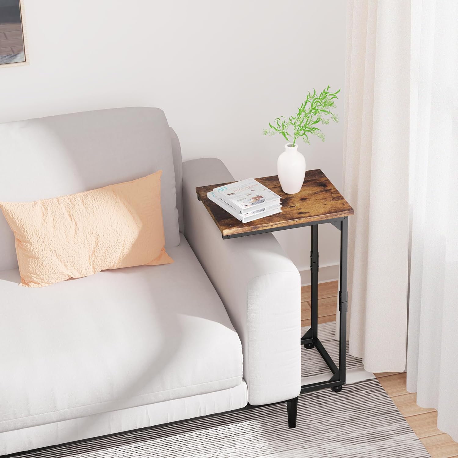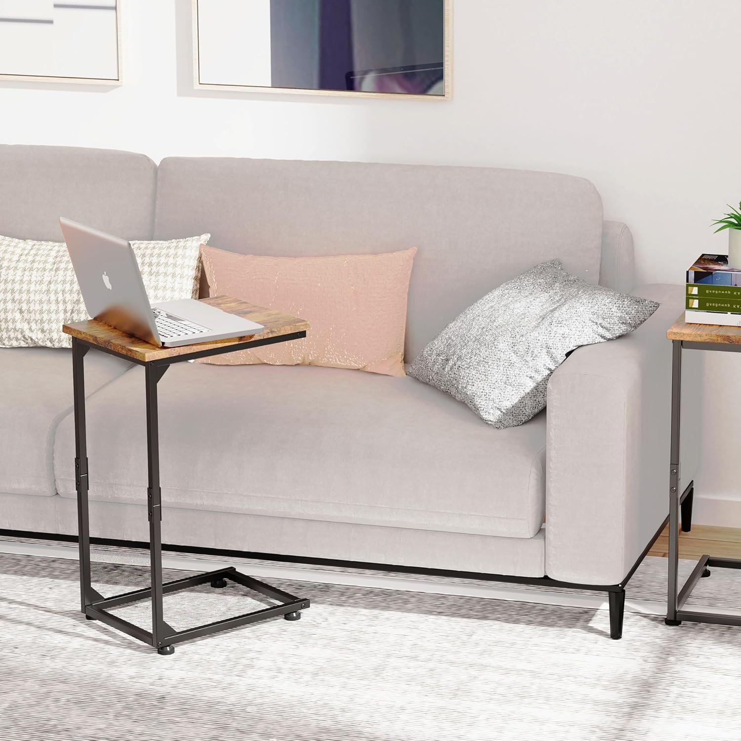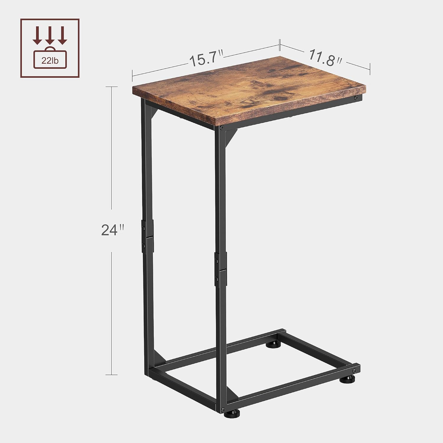 C Shaped End Table, Small Side Table for Couch (Rustic Brown and Black) & Small End Table for Small Space (Grey)