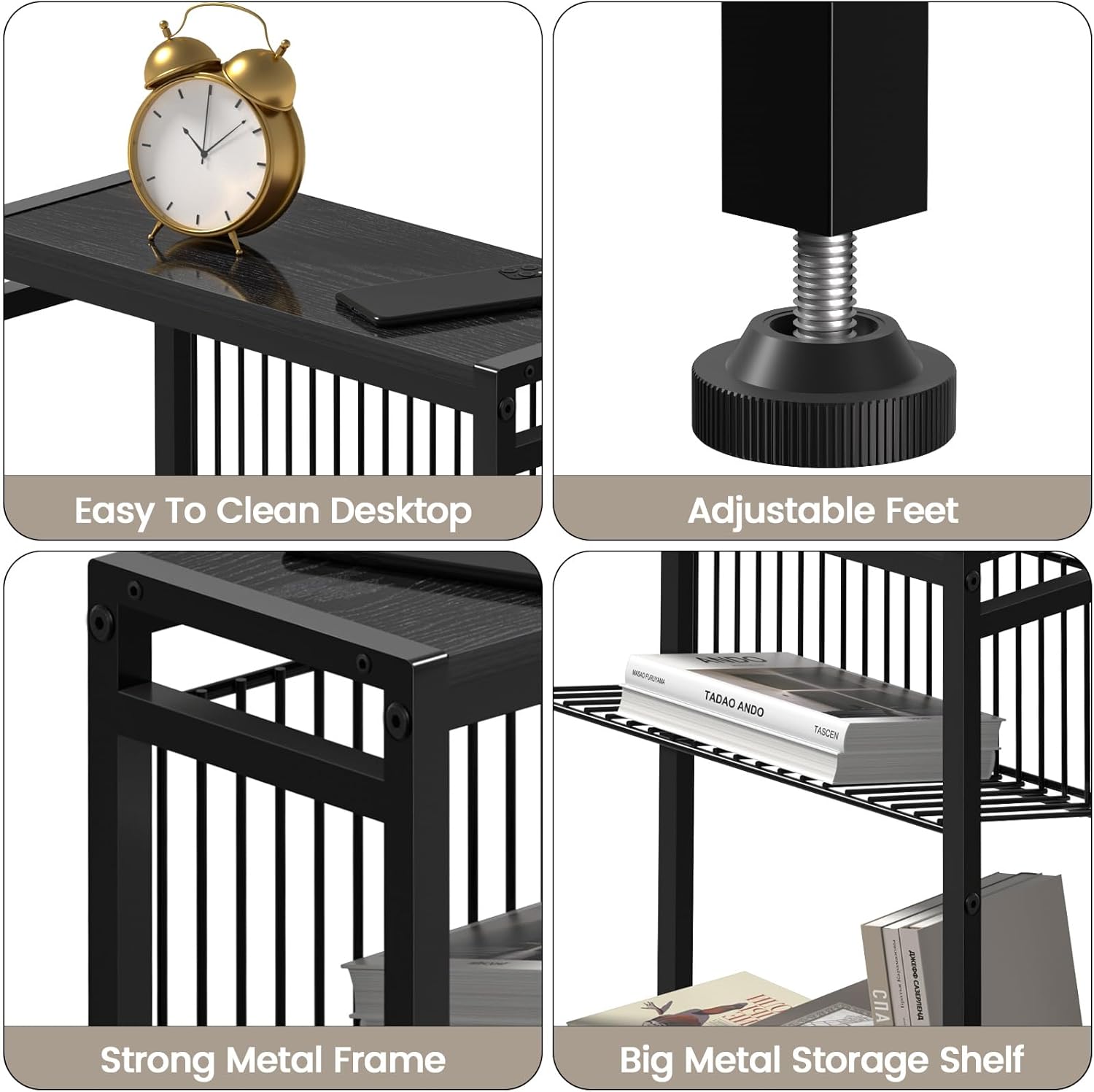 Furinno Simplistic a Frame Computer Desk, Espresso & Just 3-Tier Turn-N-Tube End Table/Side Table/Night Stand/Bedside Table with Plastic Poles, 1-Pack, Americano/Black