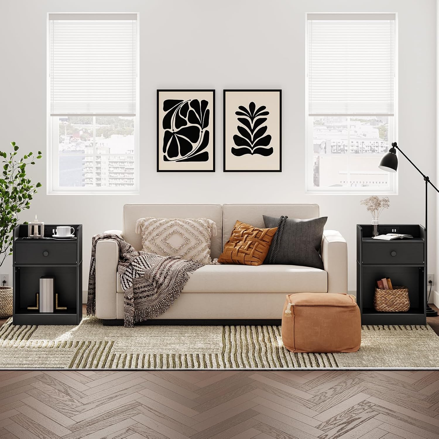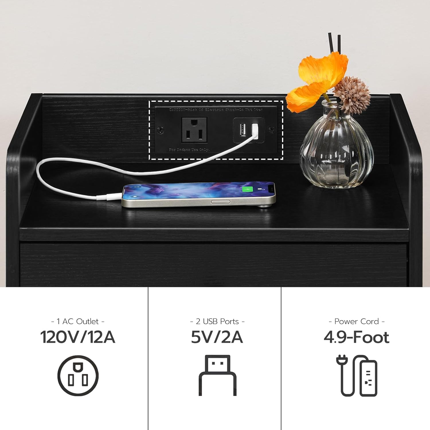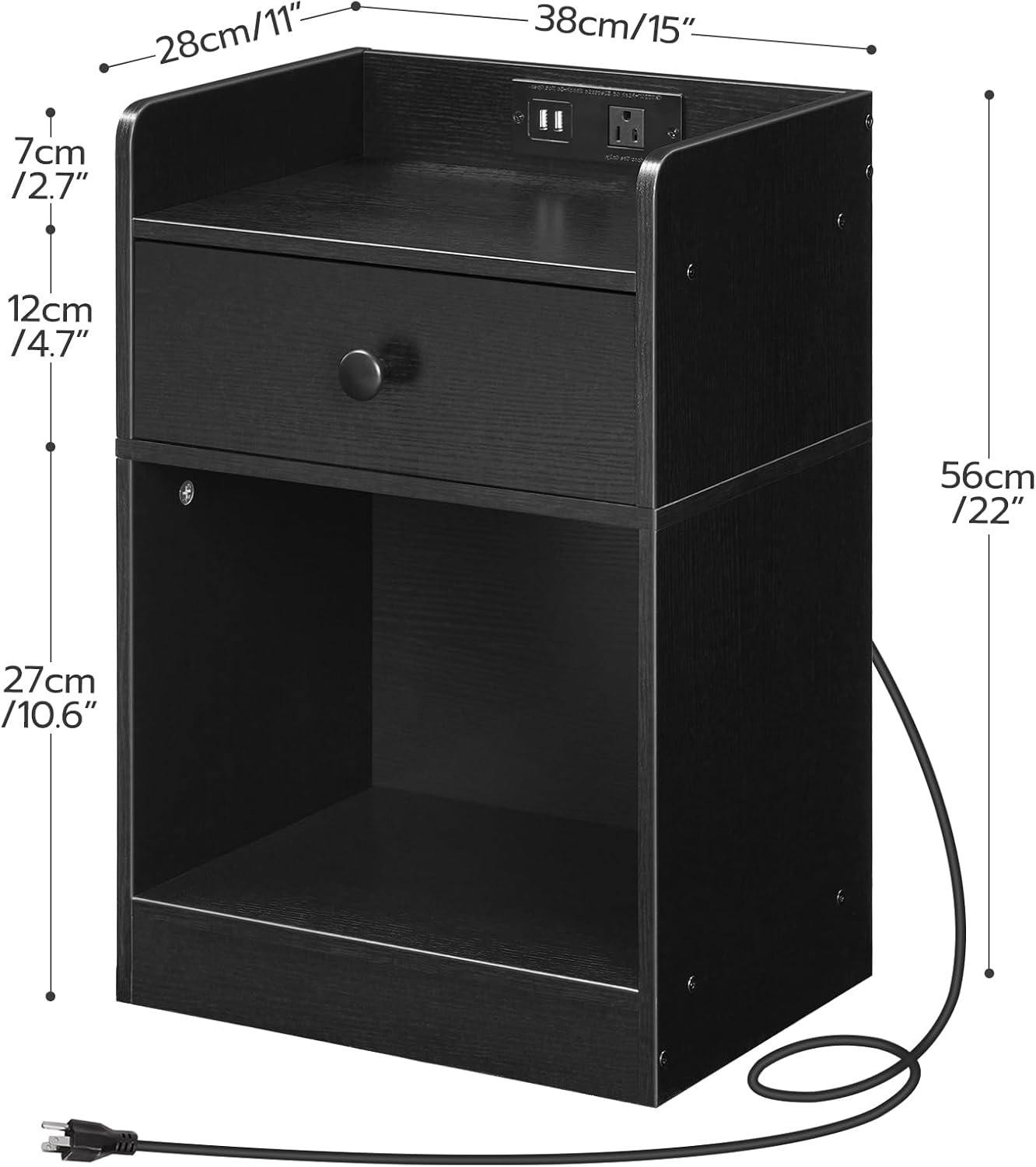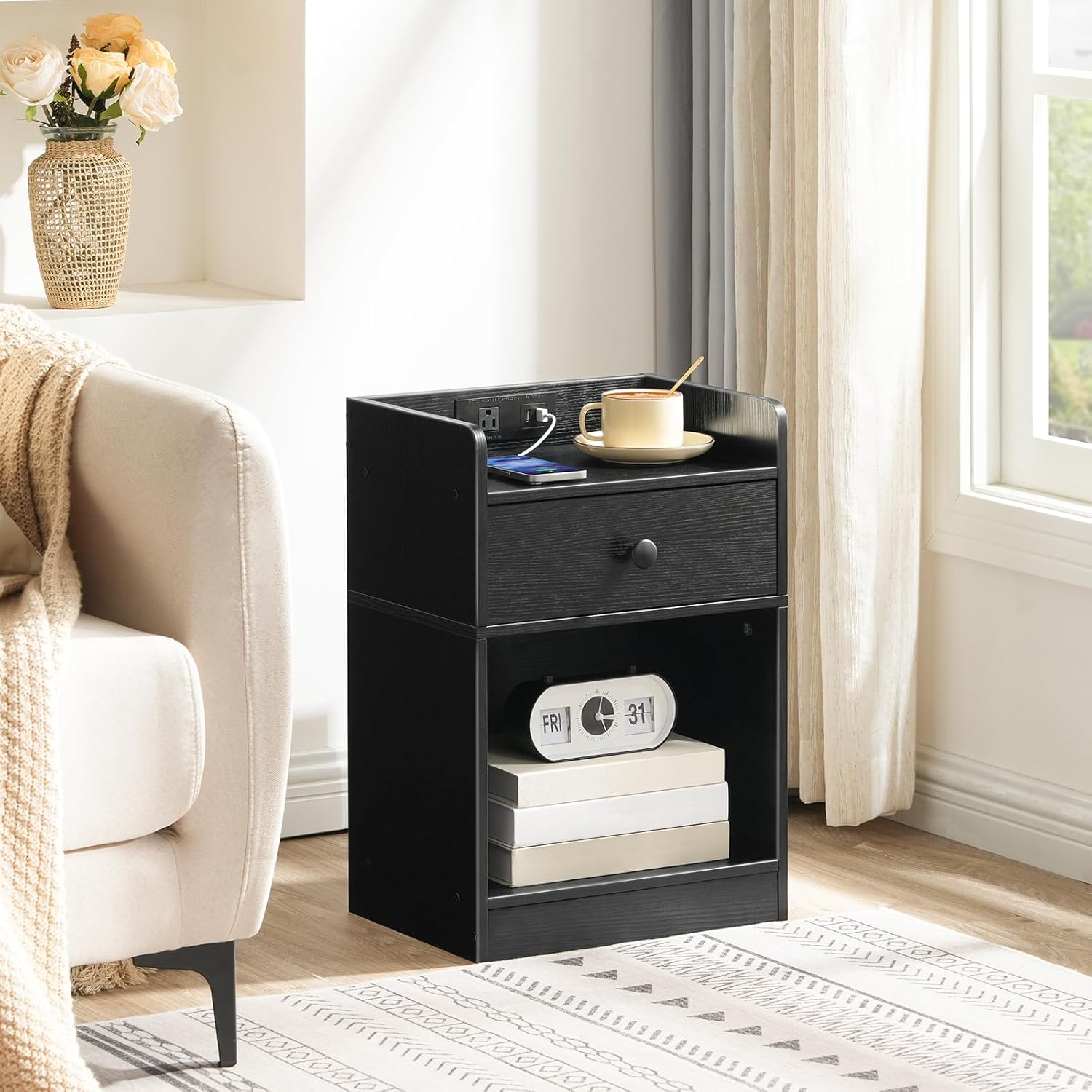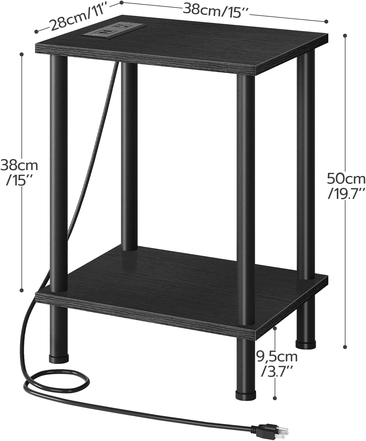 HOOBRO Side Table with Charging Station, End Tables with USB Ports and Outlets, Nightstand with Storage Shelves for Small Spaces, Living Room, Bedroom, Black BK09UBZ01-BK18UBZ01