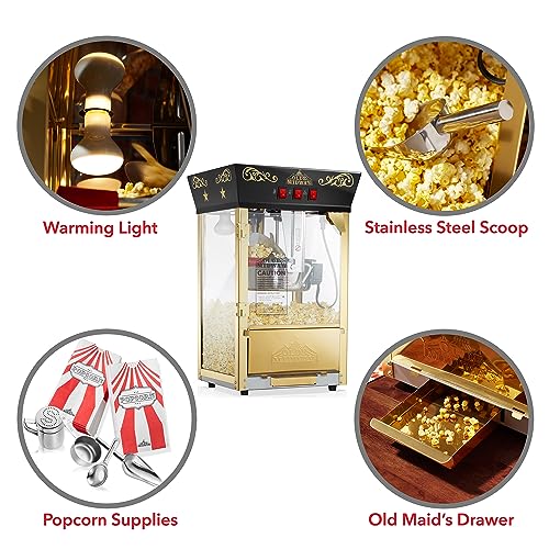 Olde Midway Movie Theater-Style Popcorn Machine Maker with 8-Ounce Kettle - Black, Vintage-Style Countertop Popper