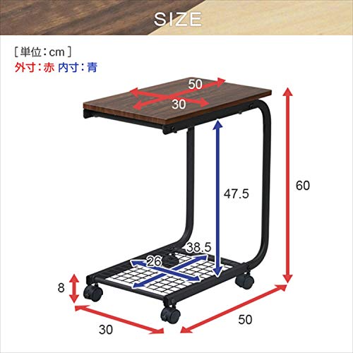 YAMAZEN BST-5030C(WL) Side Table with Casters, Walnut (Black Legs)