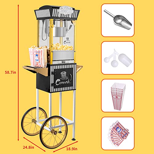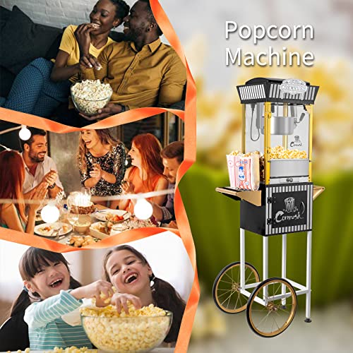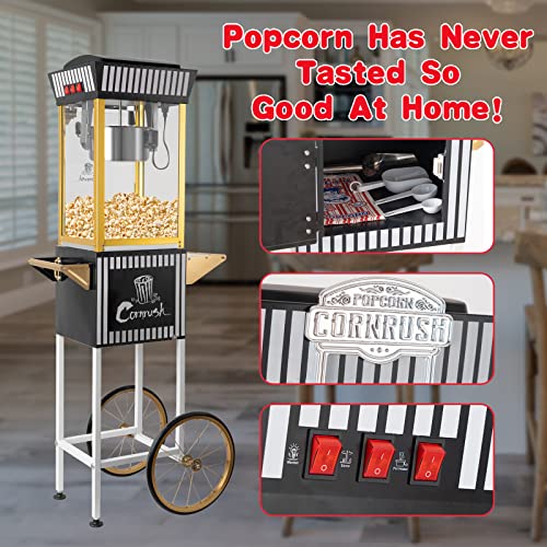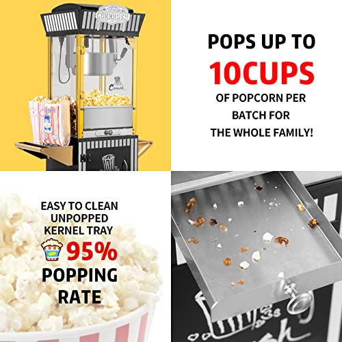 Popcorn Maker Professional Cart Retro Classic Popcorn Popper Machine 8 Ounce with Nonstick Kettle for Home Use, Party and Birthday Gift, Black