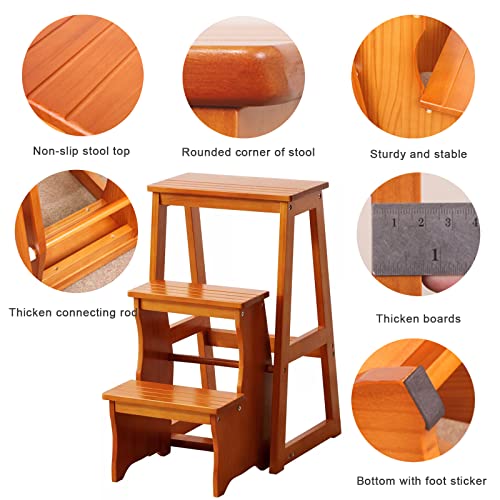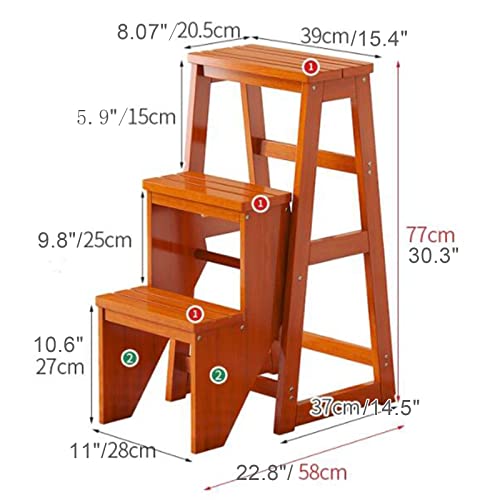 3 Step Solid Wood Folding Ladder Chair, Protable Wooden Step Stool, Convertible Folding Chair Step Stool Display Stand for Adults Office Home Kitchen Outdoor(64cm(25.2"), White)