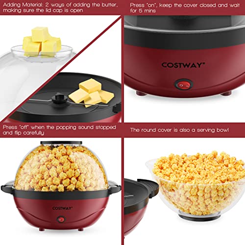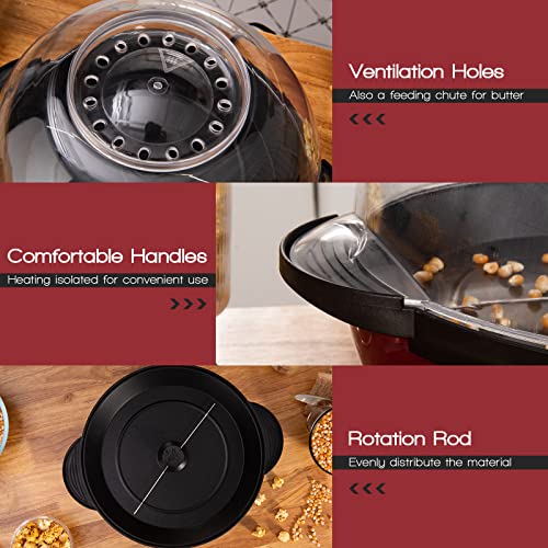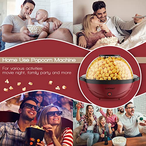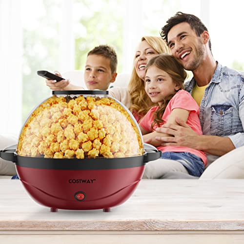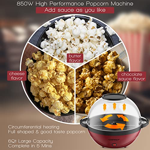 COSTWAY Electric Hot Oil Popcorn Popper Machine, 6 Quarts Fast Heat up Stirring Popper, Electric Popcorn Maker with Stirring Rod, Nonstick Plate, Dishwasher Safe, 24 Cups, 850W (Red)
