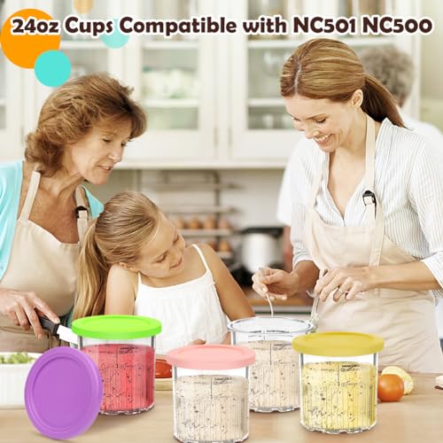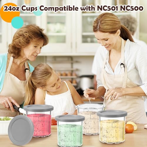 Replacement For Ninja Creami Deluxe Pints and Lids-4 Pack-24OZ Ice Cream Maker Pints Compatible with Ninja NC501 NC500 Series,11-in-1 Creamy Ice cream Containers Cups Dishwasher Safe