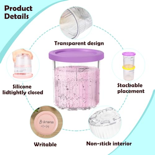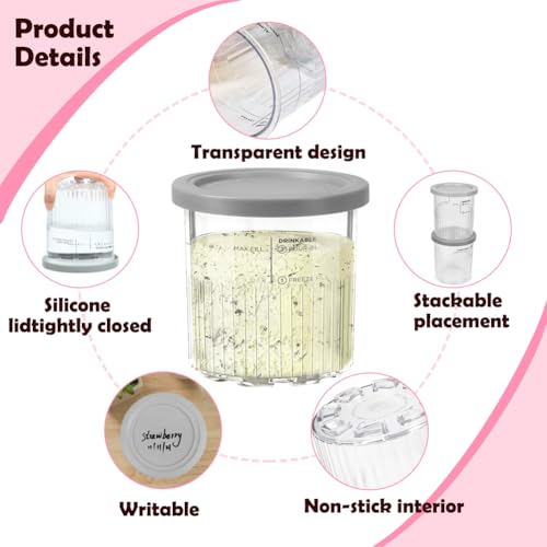 Creami Pints and Lids, for Ninja Ice Cream Maker Pints, Ice Cream Containers with Lids Bpa-Free,Dishwasher Safe Compatible NC301 NC300 NC299AMZ Series Ice Cream Maker