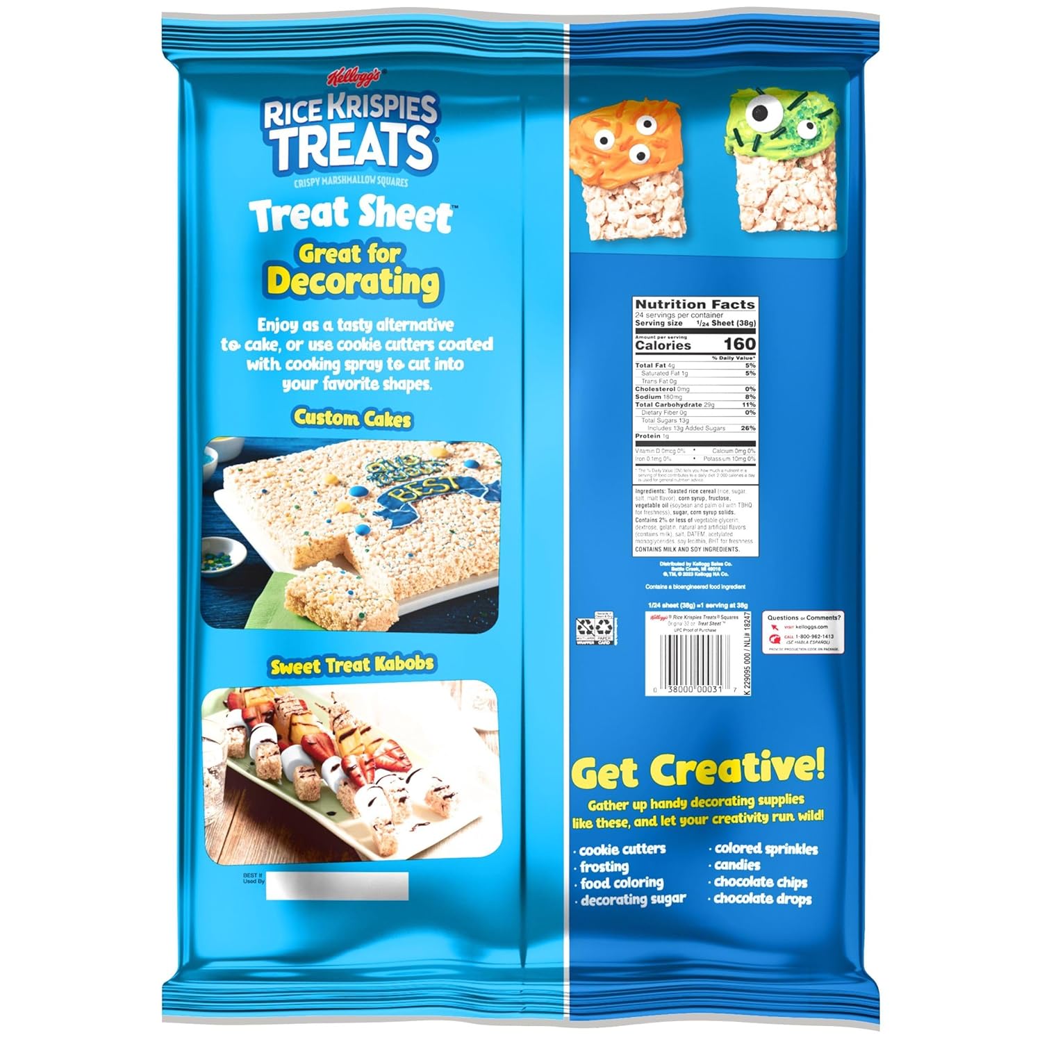 Rice Krispies Treats Marshmallow Snack Sheet, Kids Snacks, Treat Making, Baking Project, Original, 32oz Sheet (1 Sheet)