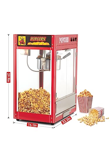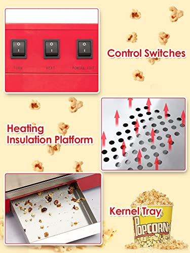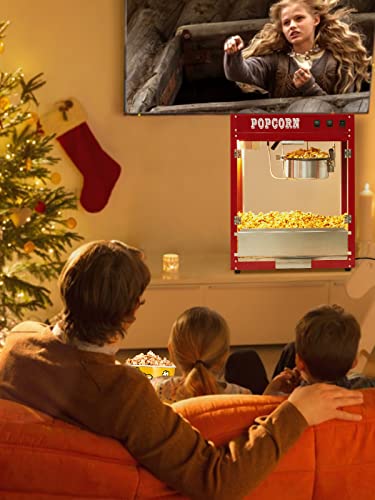 Popcorn Machine with 8 Oz Kettle, Vintage Movie Theater Commercial Popcorn Machine with Interior Light - Red