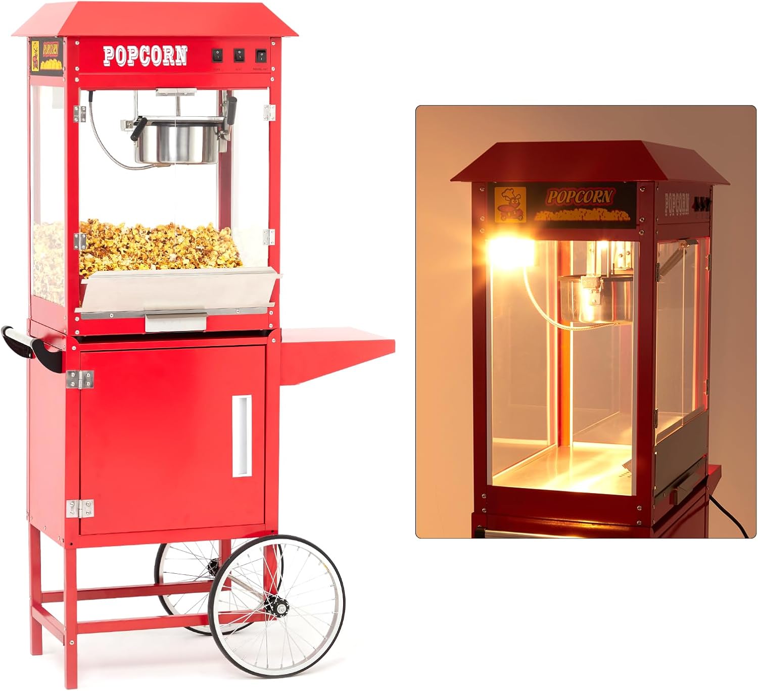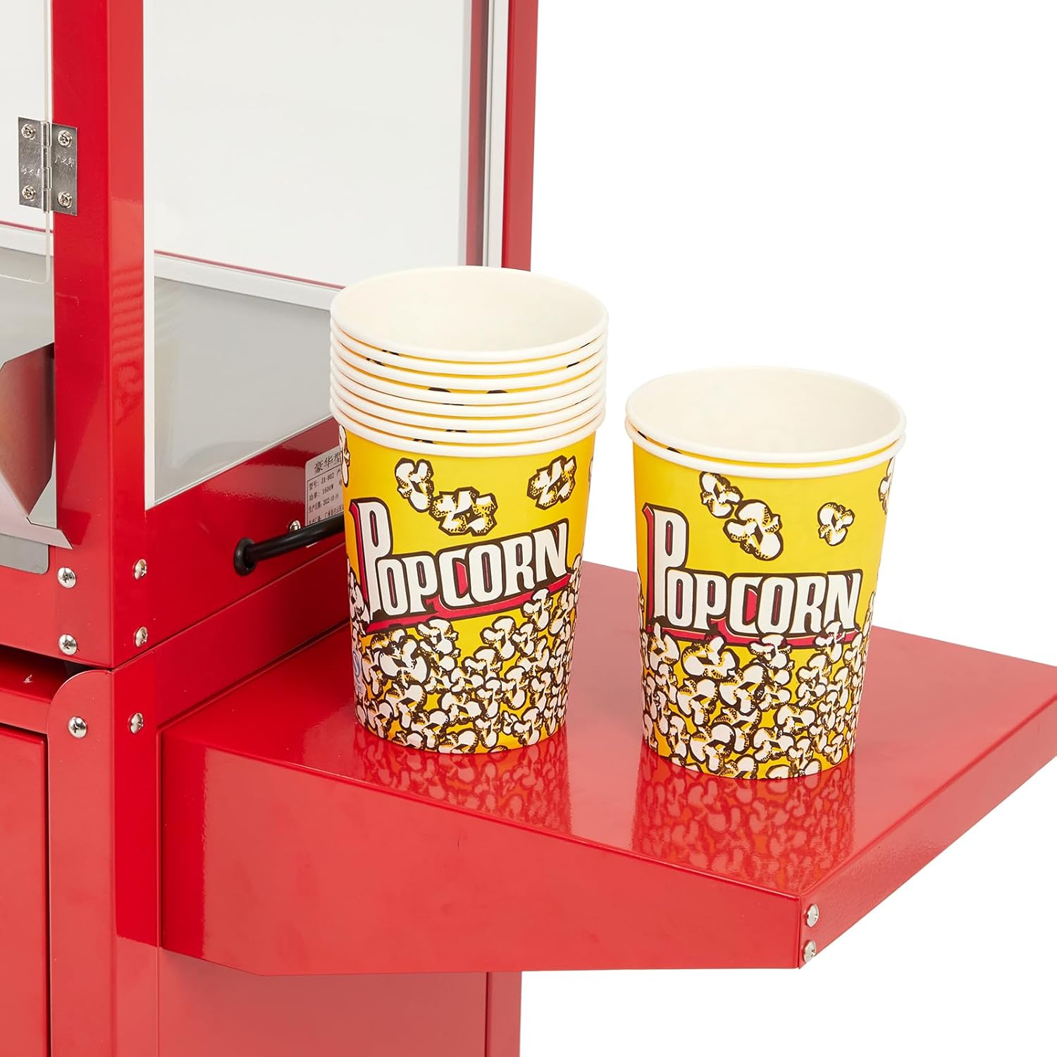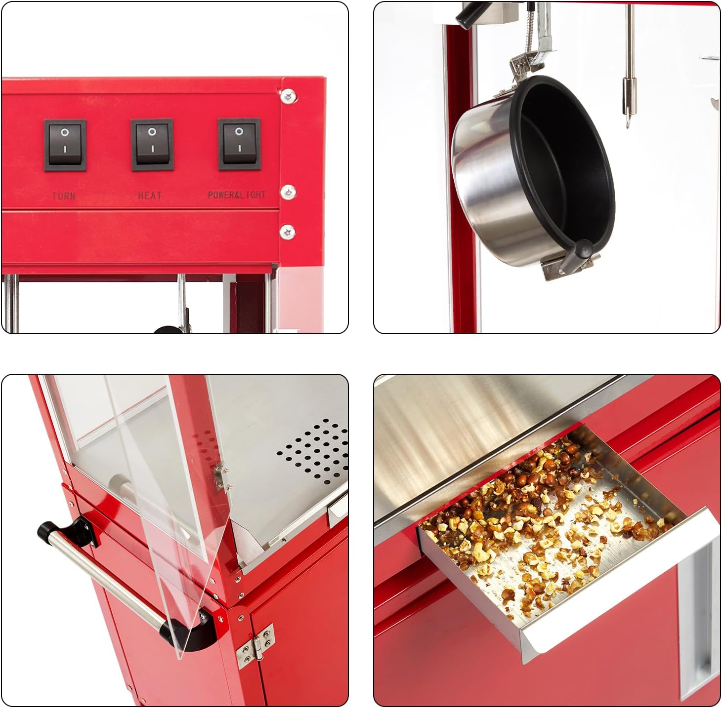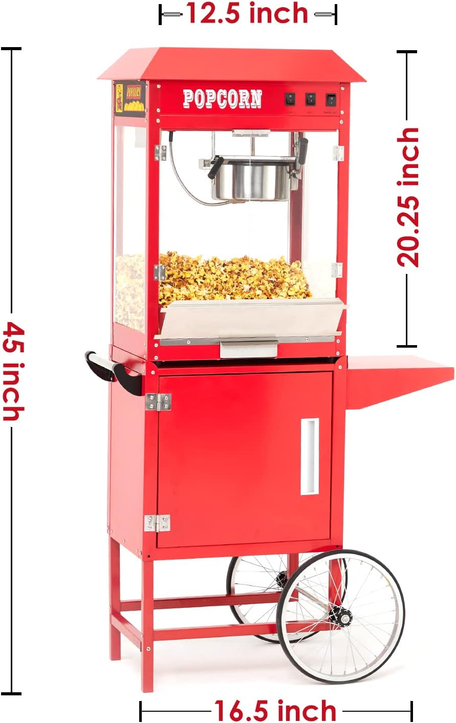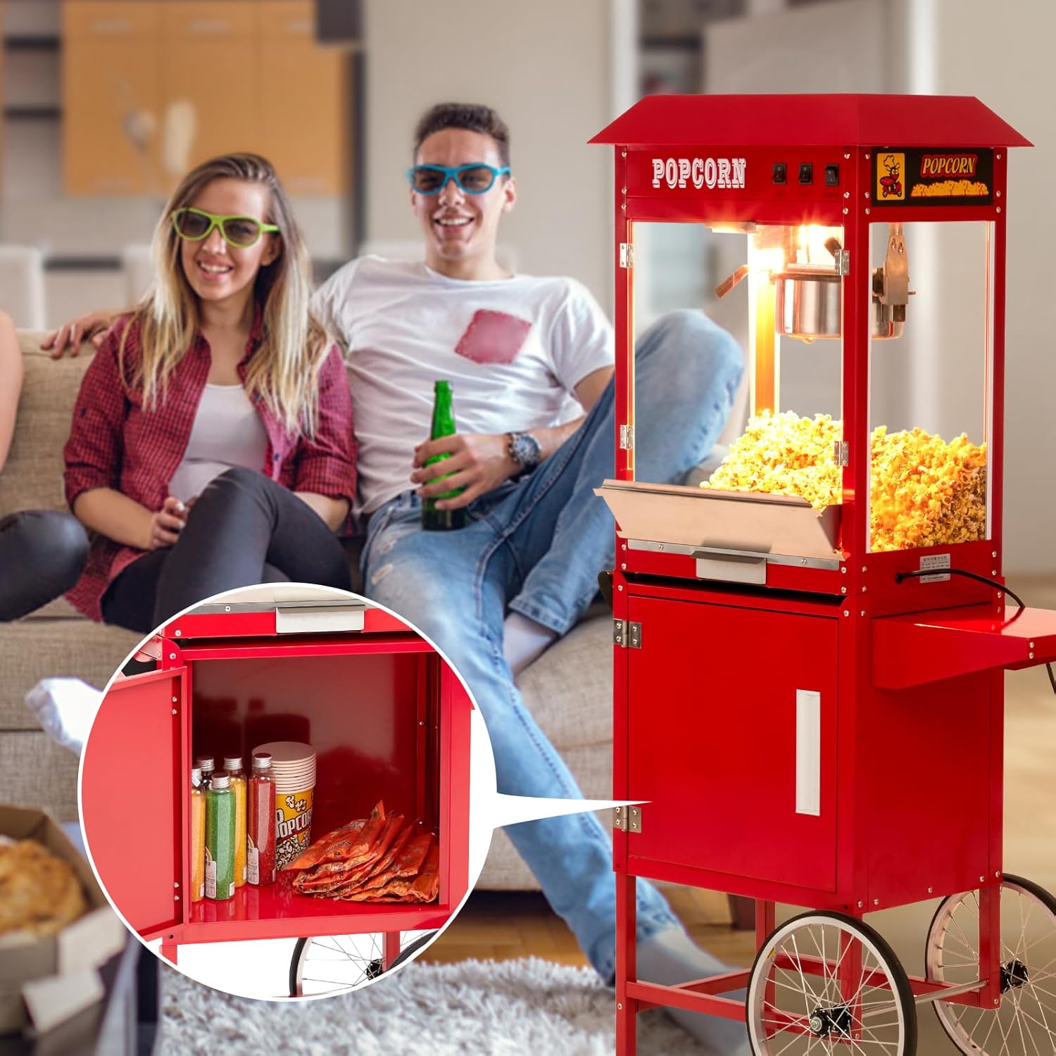 Popcorn Popper with Cart and Stand,Theater Commercial Vintage Popcorn Maker with 8 Oz. Stainless Steel Kettle and Storage Included, Red