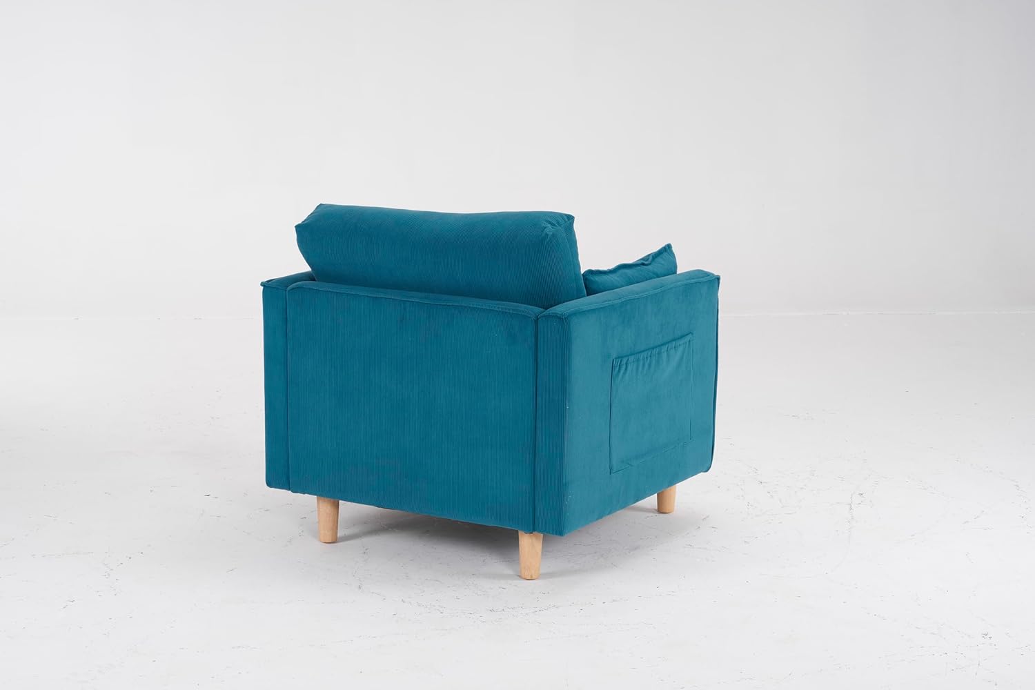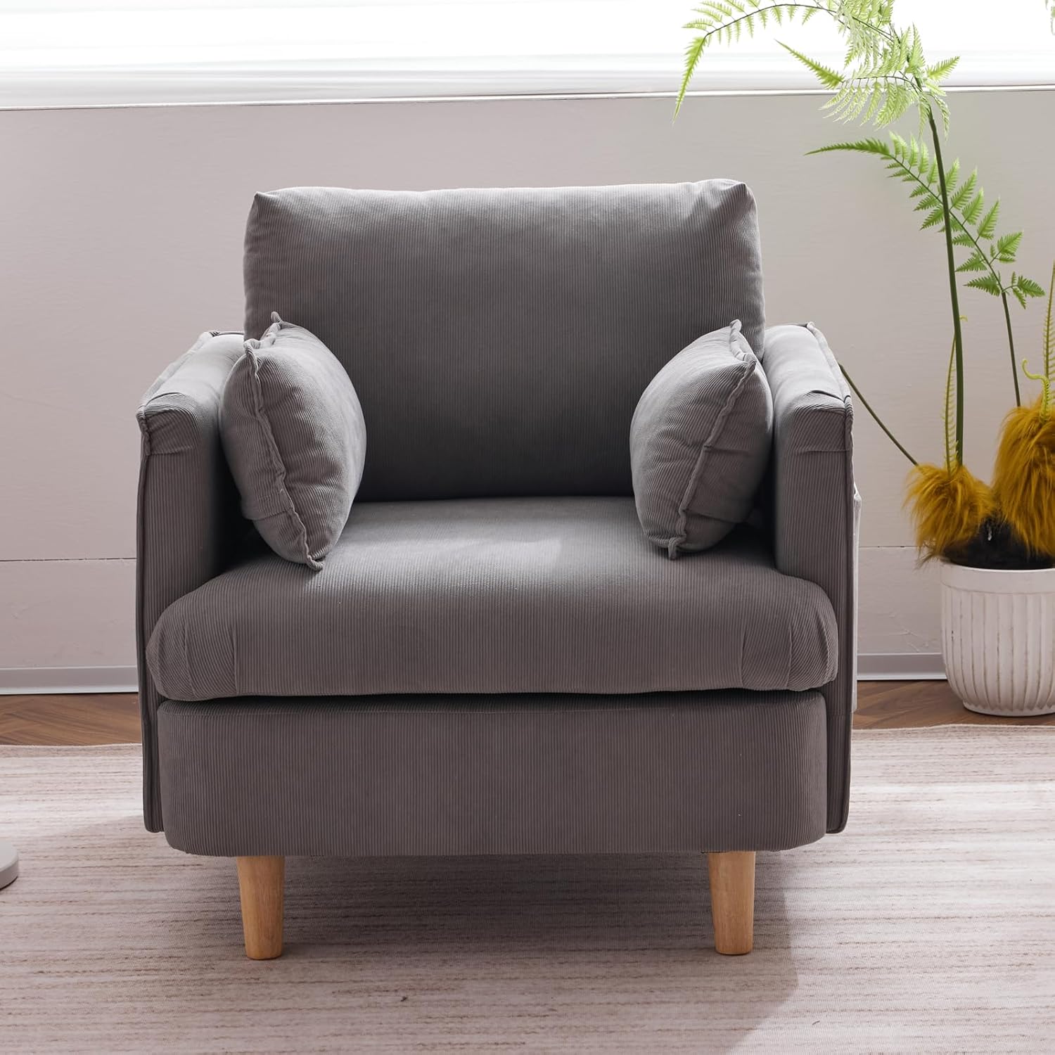 29.5 "W Modern Fabric Decorative Chair Armchair Upholstered Reading Chair Single Sofa Casual Club Chair with Solid Wooden Feet and 2 Pillow, for living room, bedroom, bed room, office, corduroy fabric