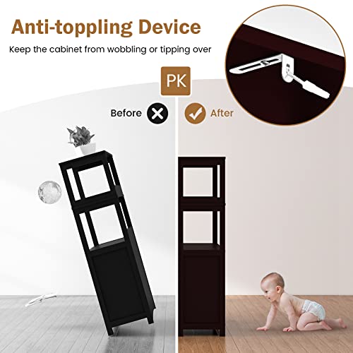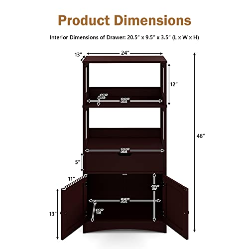 GLACER Large Bathroom Floor Cabinet, Freestanding Multipurpose Storage Cabinet with Drawer, 2 Open Shelves and Door Cupboard for Bathroom, Kitchen or Living Room, 24 x 13 x 48 inches (White)