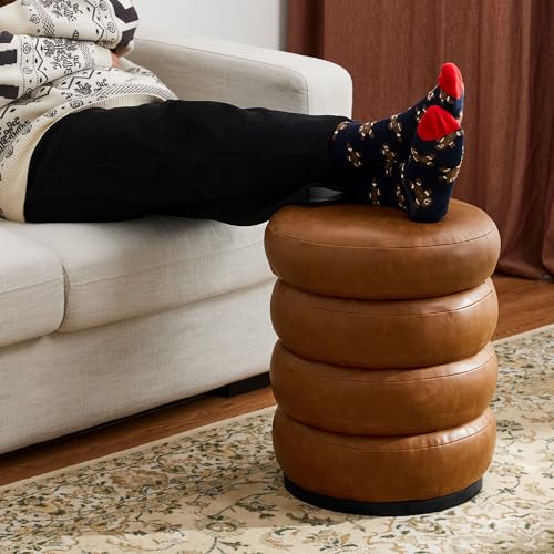 glitzhome 19.5”H Modern Storage Ottoman, Leatherette Accent Footrest Ottoman, Upholstered Round Vanity Foot Stool with Removable Lid for Couch, Sofa, Makeup Room, Bedroom, Living Room, Dorm, Black