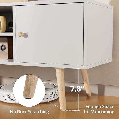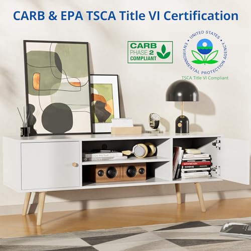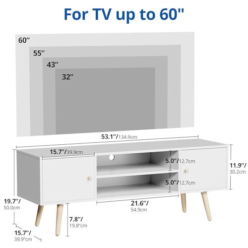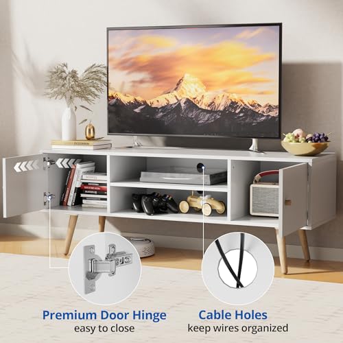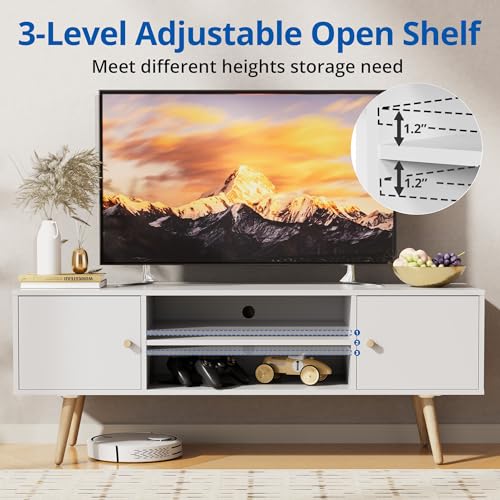 Cozy Castle Modern TV Stand for 55/60 inch TV, Entertainment Center with Adjustable Shelf and Storage Cabinets, TV Media Console for Living Room, Bedroom and Office, White