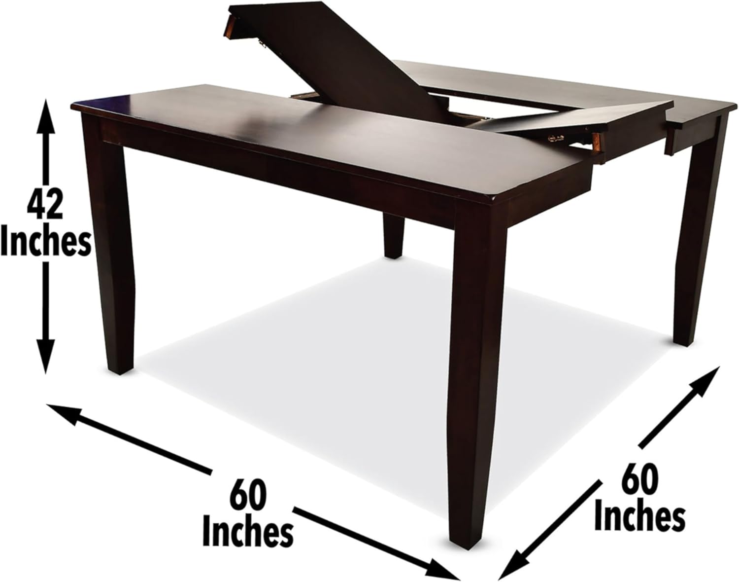 Steve Silver Company Extendable Height Dining Table, Mango Solids and Veneers, Dark Espresso Finish, Self-Storing Butterfly Leaf Counter, 60" L x 60" W x 36" H, Brown