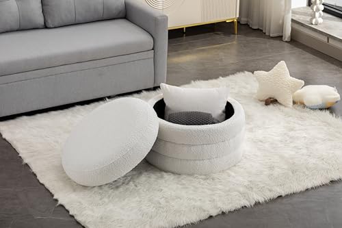 INMOZATA Storage Ottoman Round, Modern Ottomans with Storage Foot Stool Footrest for Lving Room, Boucle Ottoman Seat, Comfy Vanity Stool for Dorm Room Living Room Bedroom Boucle Black