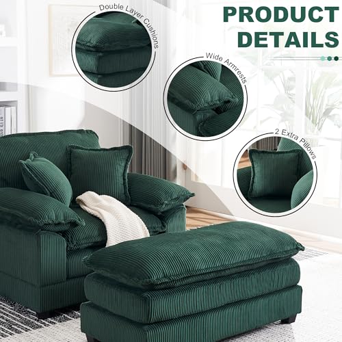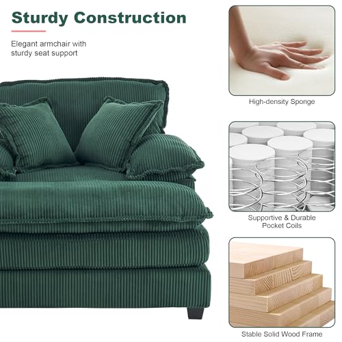 47" Oversized Corduroy Single Chaise Longue Indoor,Comfy Thicked Upholstered Pad Lounge Chair with Ottoman,Soild Wood Sleeper Reclining Chair,Deep Seat Couch for Living Room (Green, 47" Single)