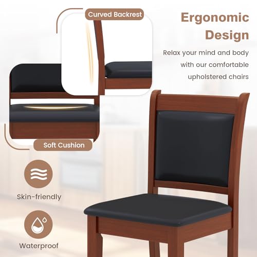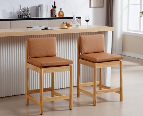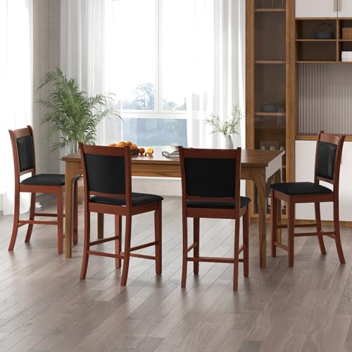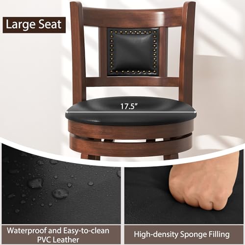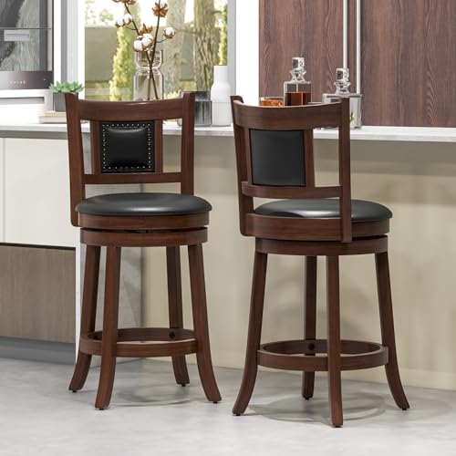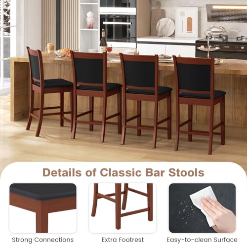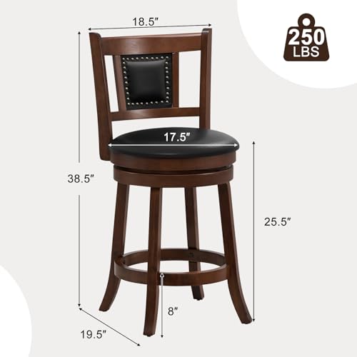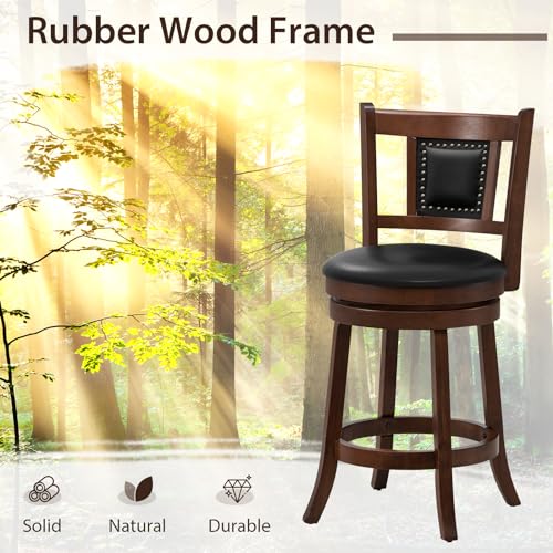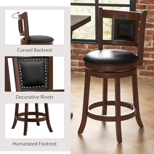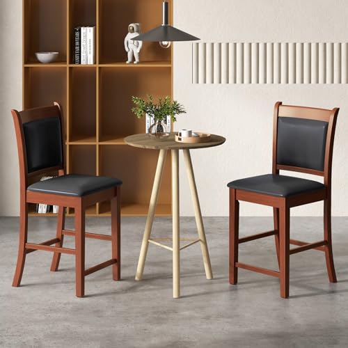 Giantex 24.5" Bar Stools Set of 2, Upholstered Counter Height Bar Stools w/Faux Leather Cushion & Footrest, Bar Dining Chairs w/Ergonomic Backrest, Solid Wood Barstools for Kitchen Island, Espresso