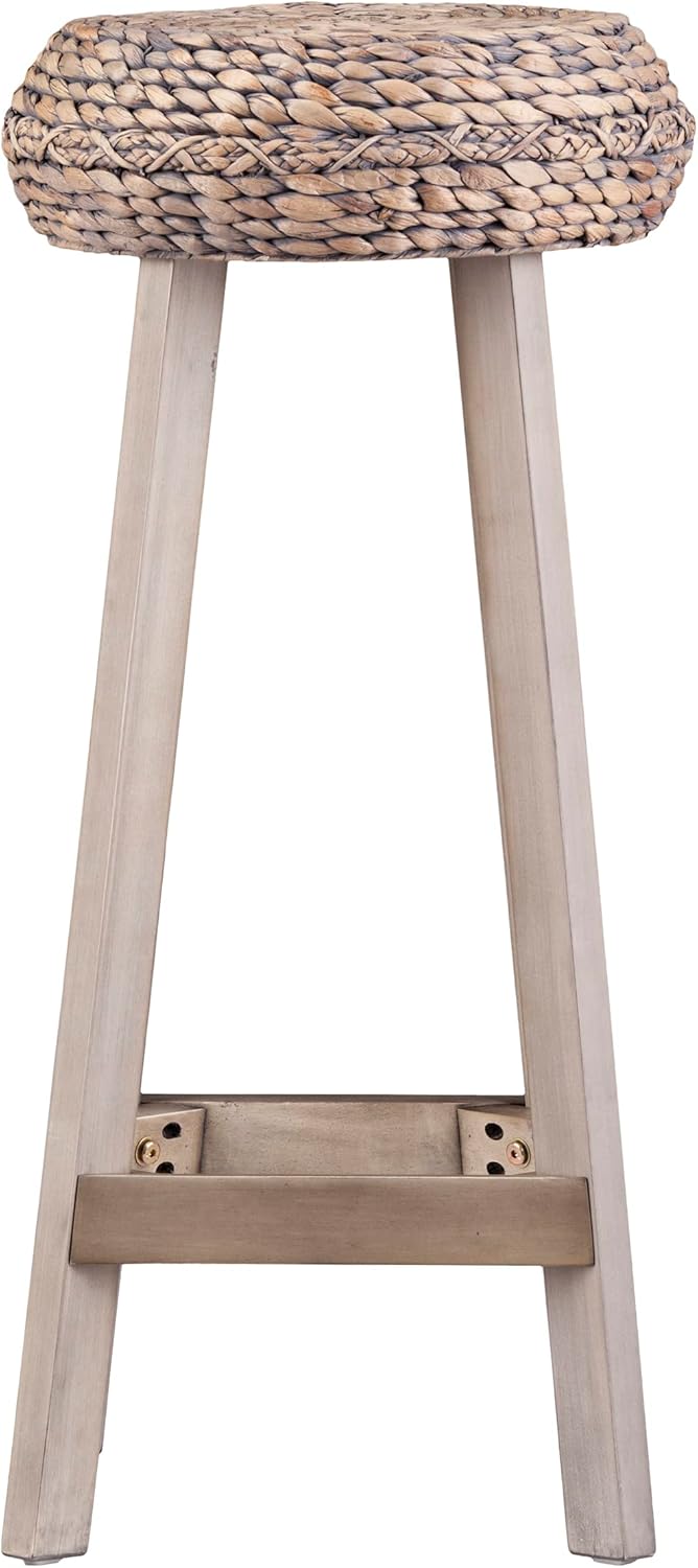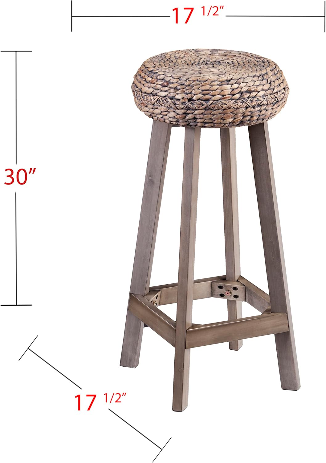 SEI Furniture Two 30" Barstools - Round Woven Fiber Seat - Weathered Gray Wood Frame, Grey (AMZ0371CB)